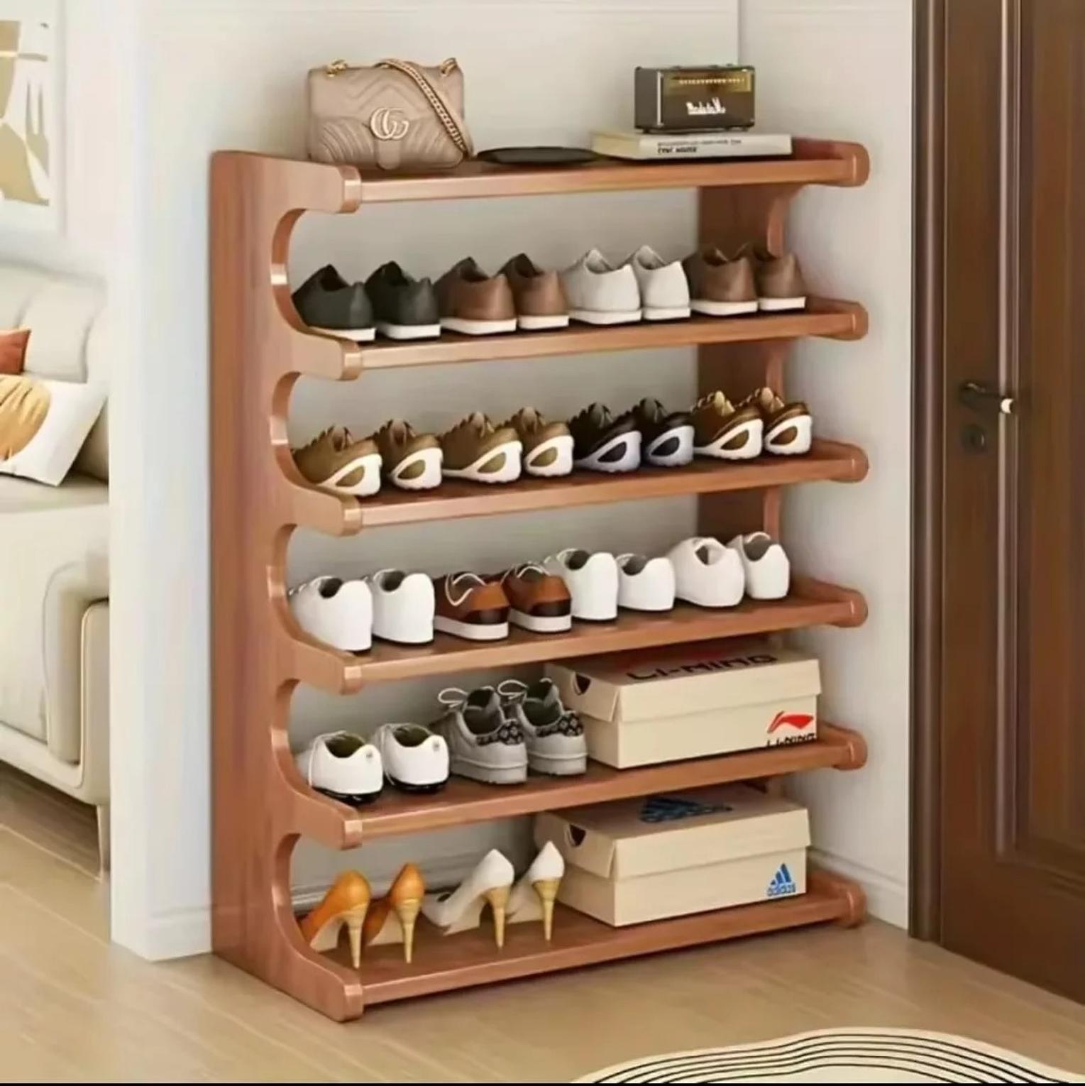 Keep your entryway, closet, or living space impeccably organized with our Multi-Tier Bamboo Shoe Rack with Wavy Design. This elegant and functional storage solution features 6 spacious layers, providing ample room to neatly store multiple pairs of shoes, from sneakers and sandals to heels and boots. Crafted from eco-friendly, durable bamboo, this rack boasts a sturdy construction that ensures long-lasting stability.The unique wavy shelves not only add a distinctive aesthetic appeal but also offer practical support for your footwear. Measuring 83cm (width) x 25cm (depth) x 70cm (height), this space-saving shoe organizer is perfectly sized for apartments, hallways, or any area where efficient shoe storage is needed. Its natural wood finish seamlessly blends with various home decor styles, from modern to rustic. Easy to assemble and maintain, this versatile bamboo rack is an essential home organizing piece that helps eliminate clutter and keeps your footwear accessible and well-preserved.