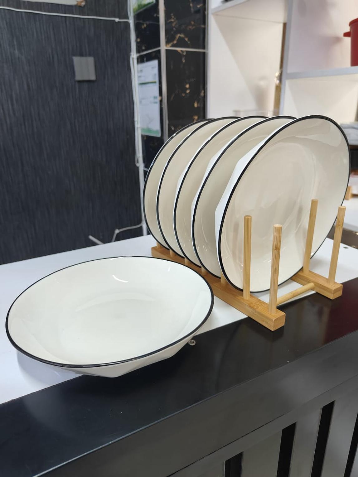 Our 6-piece plate set offers a perfect blend of practicality and elegance, ideal for both casual meals and formal dining. Each plate is crafted from high-quality, durable ceramic, providing a sturdy, chip-resistant surface for long-lasting use. With a sleek, modern design, these plates complement any table setting, adding a touch of sophistication to your dining experience. Whether you're hosting guests or enjoying a family meal, this 6-piece set is versatile, easy to clean, and perfect for enhancing your dinnerware collection.