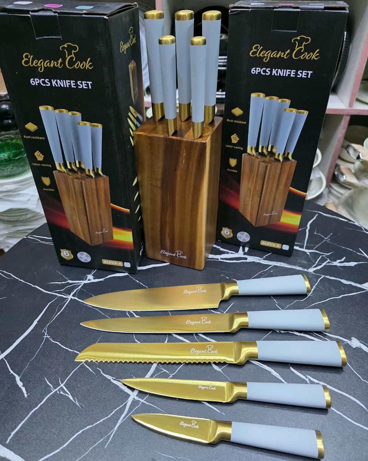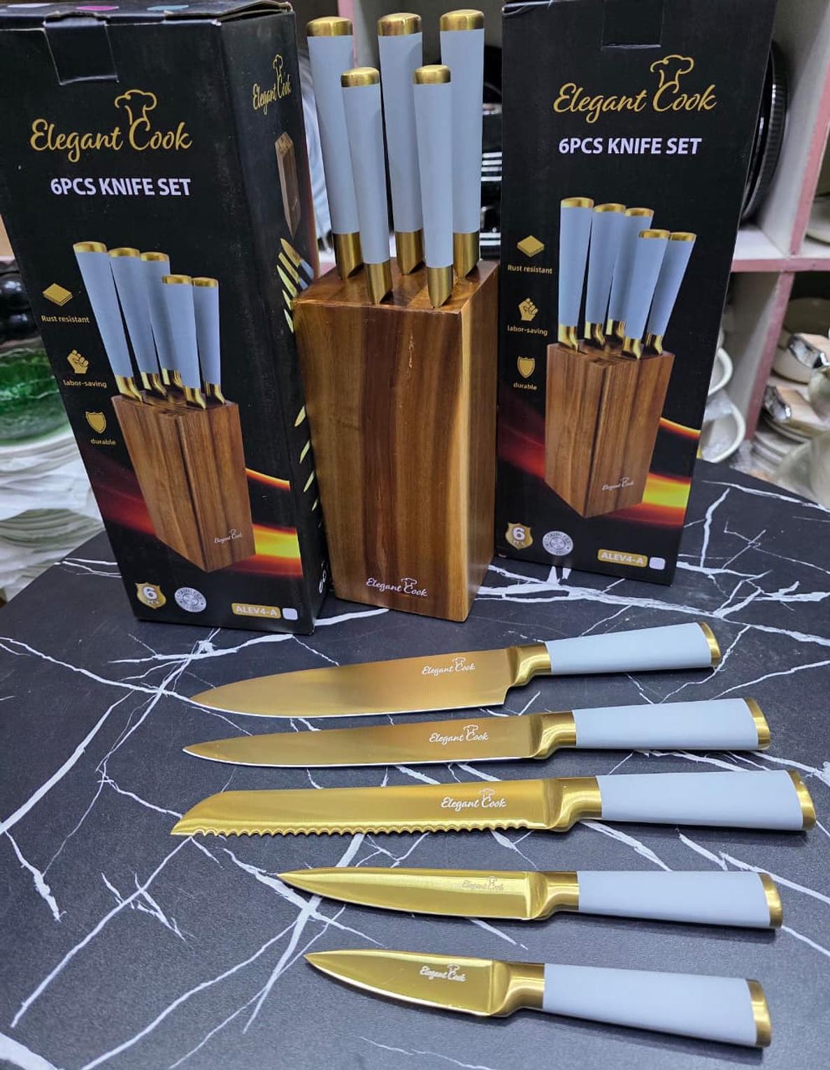 Achieve precision cutting with a touch of luxury using the Elegant Cook knife collection. This 6pcs Premium quality Golden kitchen knife Set is designed to combine striking aesthetics with high-performance function for the modern home chef.