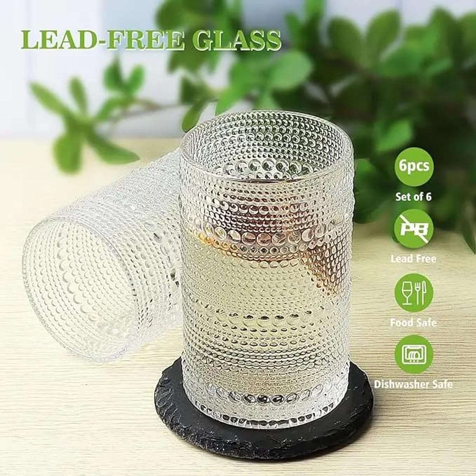 Made from durable glass, these tumblers are dishwasher safe, providing effortless cleanup and convenience for everyday use or entertaining guests. This versatile set is ideal for both casual meals and special occasions, allowing you to impress your friends and family with style. Whether you're hosting a dinner party or enjoying a quiet evening at home, this embossed glass set is the perfect choice for elevating your beverage service.
