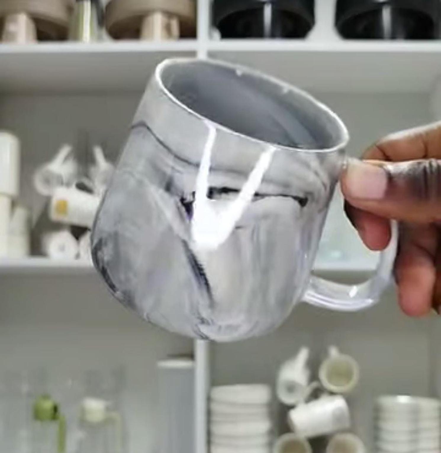 These Pearl Marble Porcelain Tea/Coffee Mugs blend timeless elegance with everyday comfort, offering a luxurious sipping experience. Crafted from high-quality porcelain, each mug features a unique pearl marble finish that exudes sophistication and style. The smooth, glossy surface and comfortable handle make these mugs perfect for enjoying hot beverages, whether it's a quiet morning coffee or an evening tea. Their refined look makes them suitable for both personal use and entertaining guests, adding a subtle yet elevated aesthetic to your kitchen or dining space. Durable, dishwasher-safe, and beautifully crafted, these mugs are a charming addition to any mug collection.