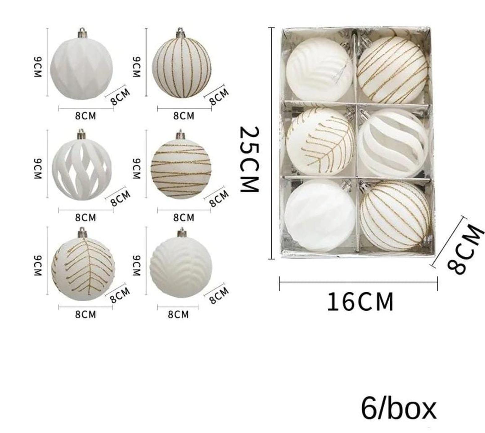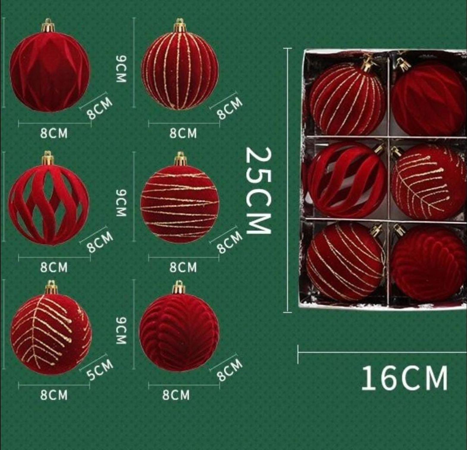 This 6-piece set of Christmas balls offers a beautiful assortment of ornaments that combine different textures, colors, and finishes, creating a dynamic and festive look for your holiday tree. Each ball is carefully crafted with glossy, matte, and glittered surfaces, adding depth and sparkle to your decorations. Whether you prefer classic red, gold, or modern metallics, these ornaments bring a touch of elegance and cheer to your seasonal decor. Durable and designed to last, they are the perfect way to add a personalized, festive touch to any holiday setting, making your tree or mantle shine with seasonal spirit.
