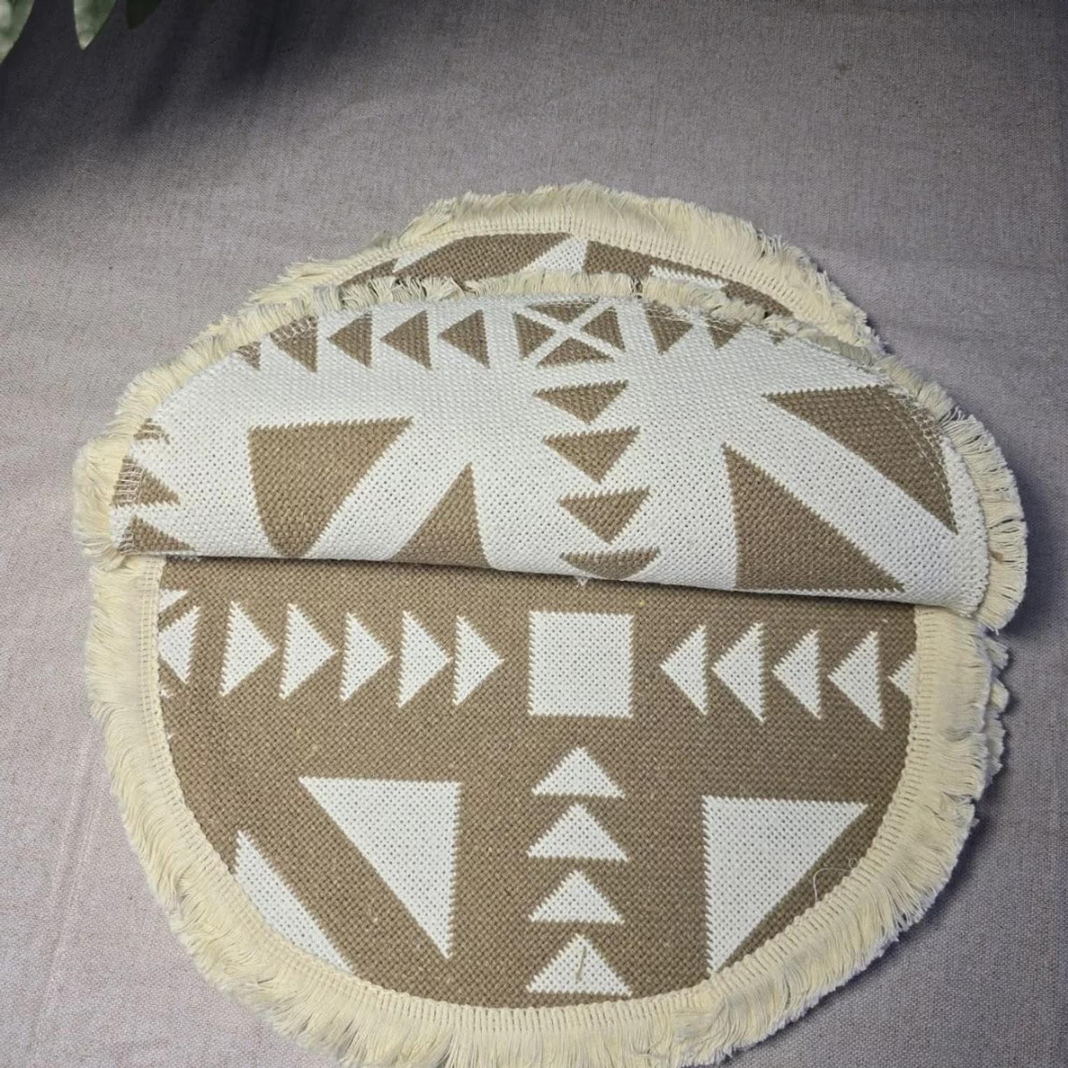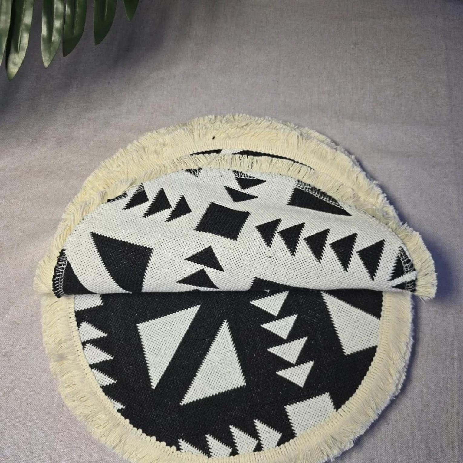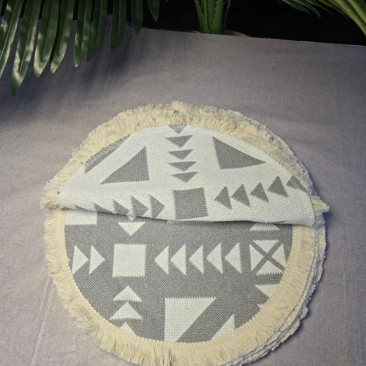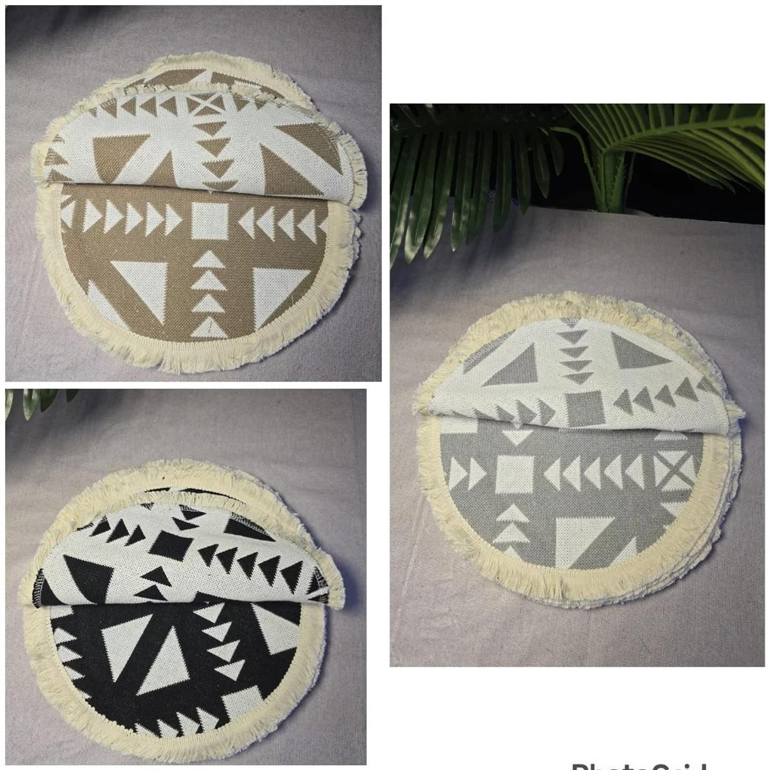 Elevate your dining presentation with the Geometric Fringe Reversible Placemats, a captivating set of six handcrafted pieces that combine unique design with practical versatility. Each placemat is meticulously hand-made from a soft and durable cotton-blended linen material, ensuring both a pleasant tactile experience and long-lasting quality. What truly sets these placemats apart is their double-sided design, featuring distinct yet complementary geometric patterns on each face. This allows you to effortlessly refresh your table setting by simply flipping them over, offering two looks in one. The edges are adorned with playful, soft fringing, adding a touch of bohemian charm and textural interest. These placemats are designed to coordinate beautifully with the matching Geometric Bloom Double-Sided Table Runner (as previously described, with available colors in black, grey, and brown patterns), creating a cohesive and stylish dining ensemble. Perfect for everyday meals or special occasions, they protect your table surfaces while adding a sophisticated and artistic flair. This unique set is a must-have for those seeking handmade placemats, reversible table linens, cotton linen blended decor, geometric dining accents, and distinctive table settings.