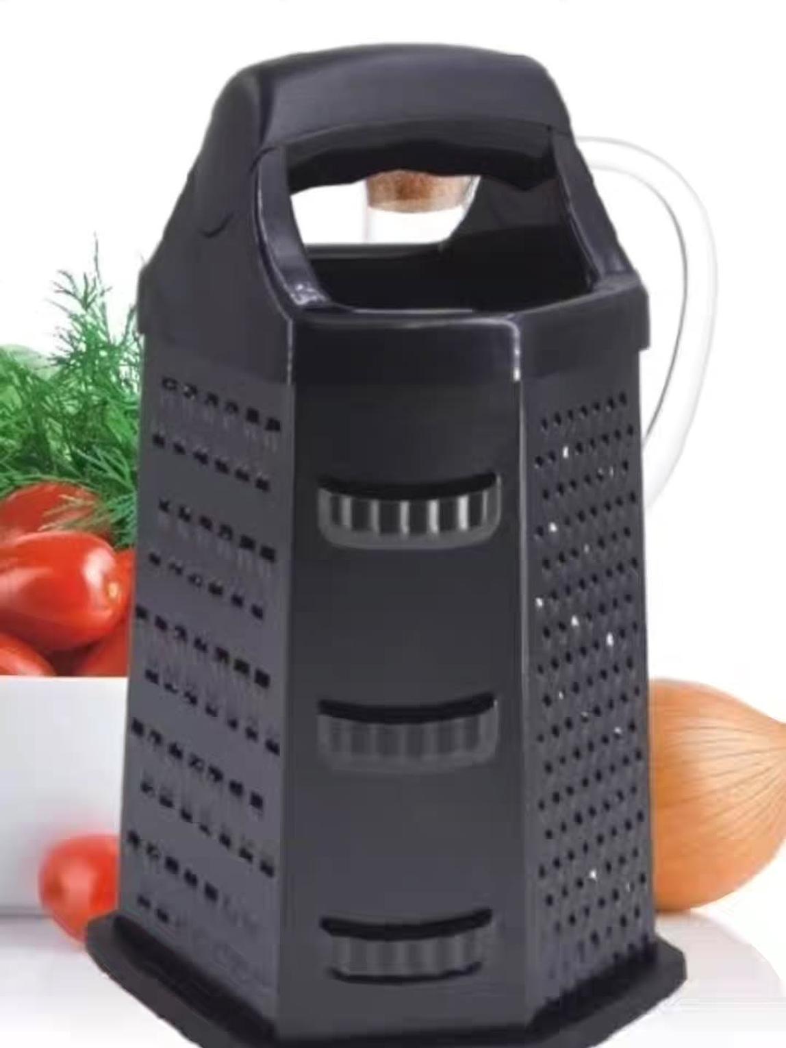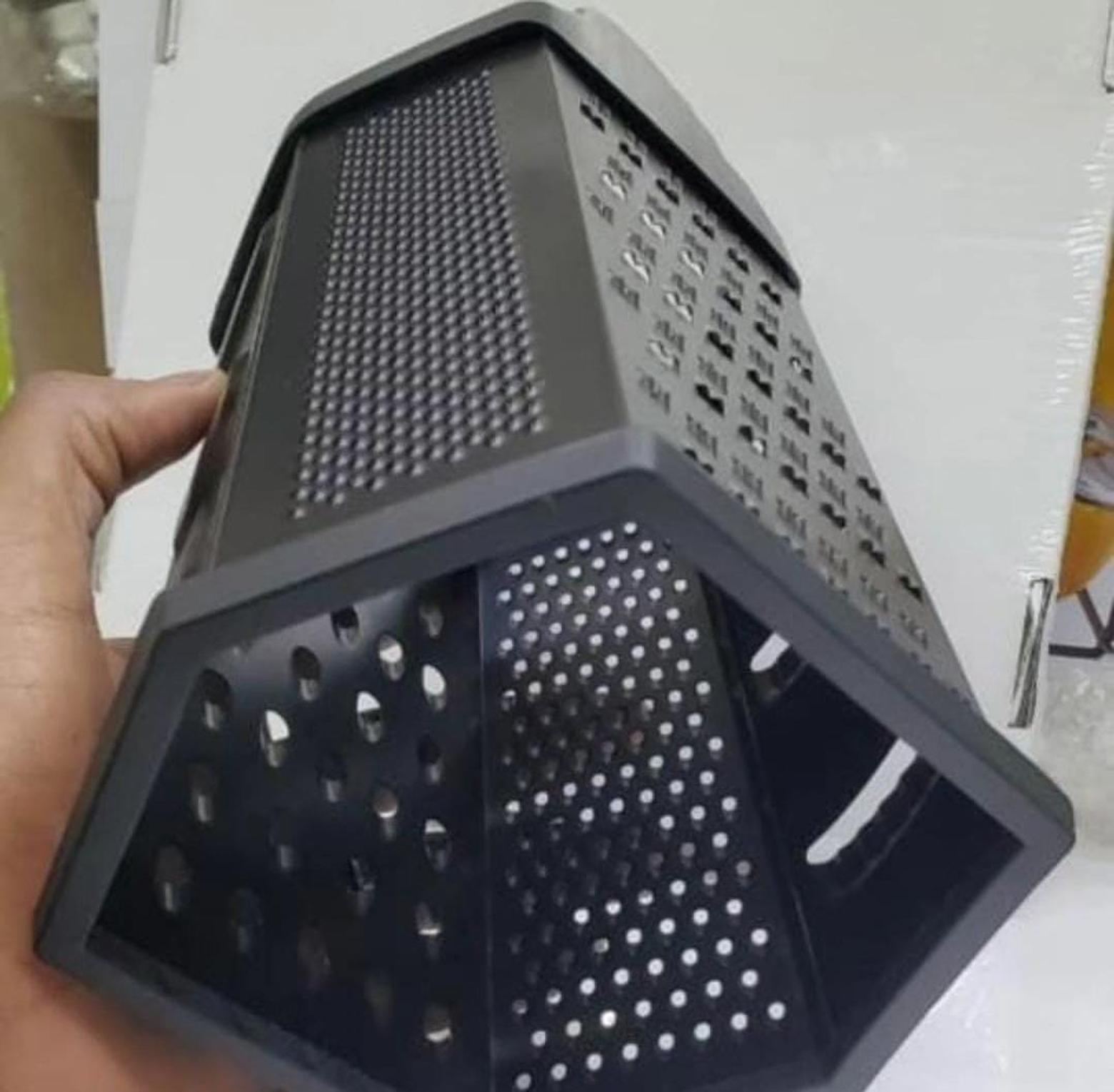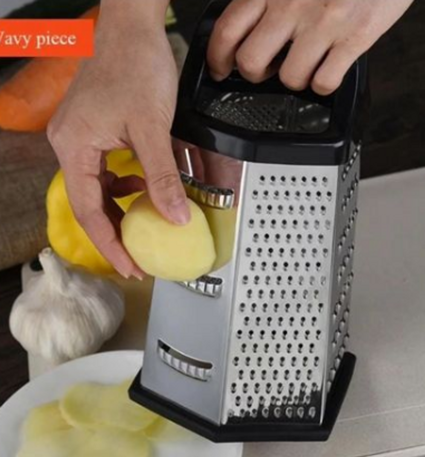 Introducing our 6-Sided Vegetable Grater with an aluminum handle, the essential kitchen tool for all your grating, shredding, and slicing needs. This multifunctional grater boasts six different sides, each tailored for specific tasks—from fine grating for cheese and zesting citrus to coarse shredding for vegetables and even slicing for uniform pieces. The durable aluminum handle provides a comfortable grip, ensuring ease of use while you tackle meal prep with confidence. Made from high-quality stainless steel, the grater is not only robust and rust-resistant but also easy to clean, making it a practical addition to your kitchen. Its compact design allows for easy storage in drawers or cabinets, while the sleek finish adds a touch of modern elegance to your culinary tools. Elevate your cooking experience with this versatile and efficient 6-Sided Vegetable Grater, designed to make food preparation quick and enjoyable.
