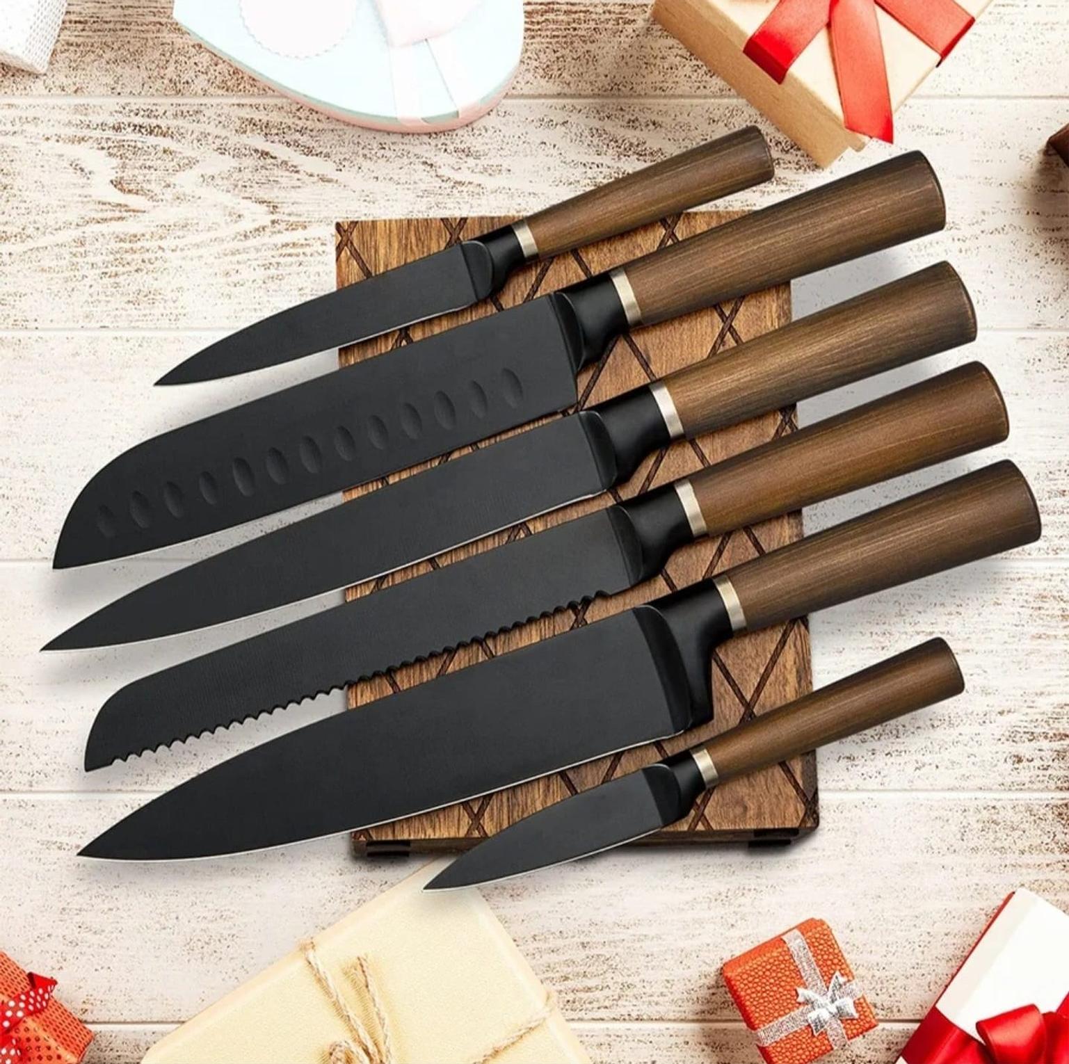 Ergonomic Design: The knives feature elegant, hollow wood handles that provide a comfortable, non-slip grip and a sophisticated, contemporary aesthetic.