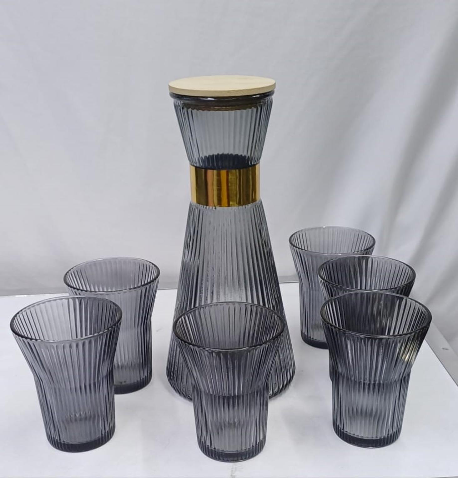 Elevate your dining experience with our elegant 7-piece Nordic water set, featuring a sleek black design. This set includes six 250ml glasses and a 1000ml decanter, all crafted from durable, high-quality glass. The minimalist yet stylish design complements both modern and classic table settings, making it perfect for entertaining guests or daily use. The 1000ml decanter allows for easy serving, while the matching glasses bring a touch of Nordic elegance to your drinkware collection. Ideal for water, juice, or any beverage, this set offers both practicality and style, making it a must-have for your home.