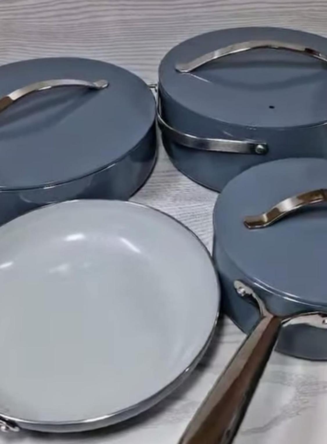 Enhance your cooking experience with our 7-piece non-stick cookware set, crafted to simplify meal prep with durability and efficiency. Each pot and pan is coated with a premium non-stick layer, ensuring food slides off effortlessly, reducing the need for oil, and making cleanup a breeze. This set includes essential pieces for everyday cooking, from simmering sauces to frying and sautéing. Built for even heat distribution, they prevent hot spots, delivering consistently perfect results. With ergonomic, heat-resistant handles for a comfortable grip, and dishwasher-safe for added convenience, this set is designed for both beginner and seasoned chefs. Compatible with all stovetops, including induction, it combines style with functionality, bringing ease and enjoyment to your kitchen.