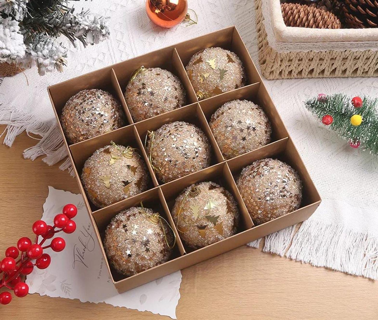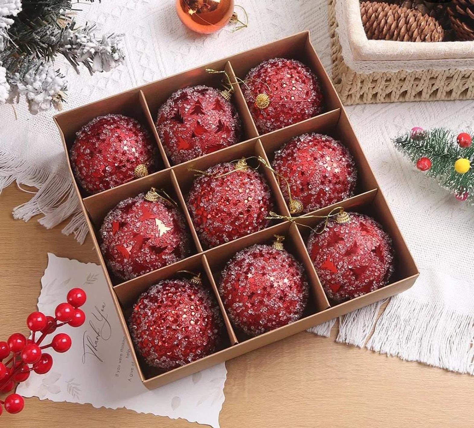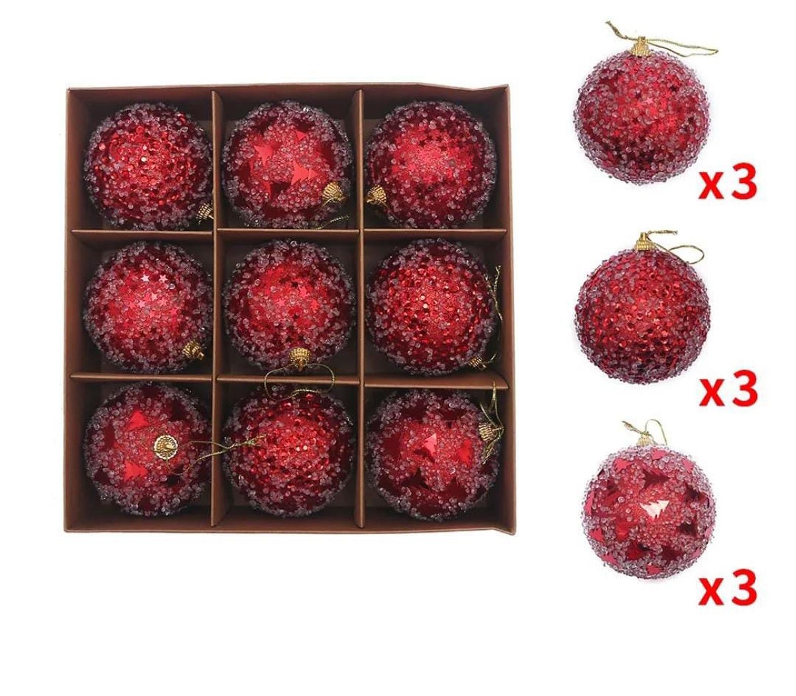 Our 9-piece Christmas ball set offers a charming collection of ornaments that enhance your tree with a blend of classic elegance and festive sparkle. Crafted from high-quality materials, each ball comes in a variety of finishes, from shimmering metallics to vibrant colors, providing the perfect accents for your holiday decor. Whether you're aiming for a traditional look or a more modern style, this set offers versatility in design and helps create a cohesive, eye-catching display. These Christmas balls make decorating your tree effortless, filling your home with the warmth and joy of the season.