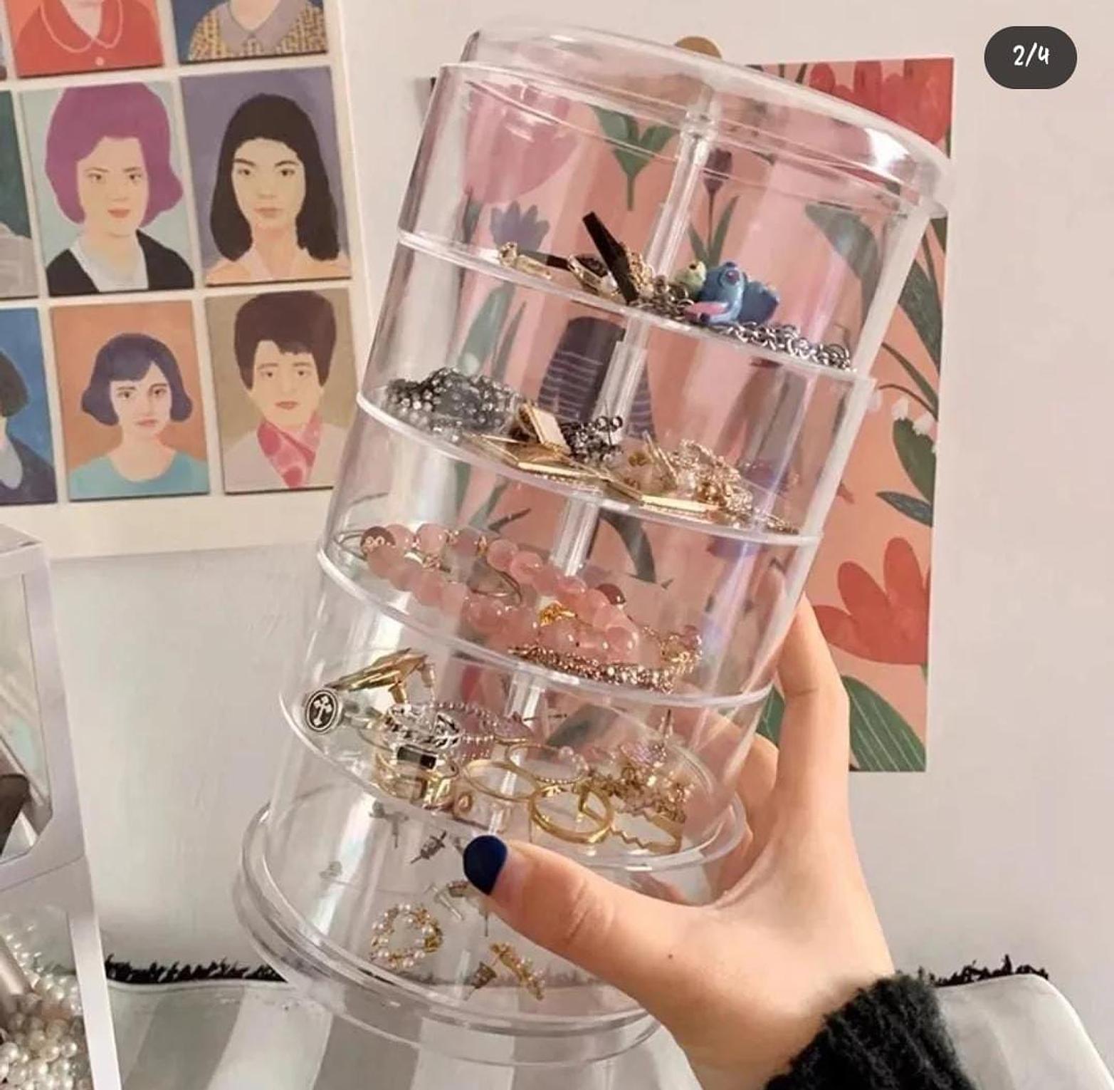 Designed to bring both elegance and functionality to your space, our Acrylic Rotating Jewelry Holder allows you to display your collection in a sleek, organized manner. Crafted from durable acrylic, this holder features a smooth rotating mechanism, making it easy to view and access your rings, necklaces, earrings, and bracelets without any hassle. Its modern, minimalist design seamlessly fits into any décor, while the clear acrylic material ensures your jewelry remains the focal point. Whether for your vanity, dresser, or closet, this holder is the perfect solution for keeping your accessories neatly organized and beautifully displayed.