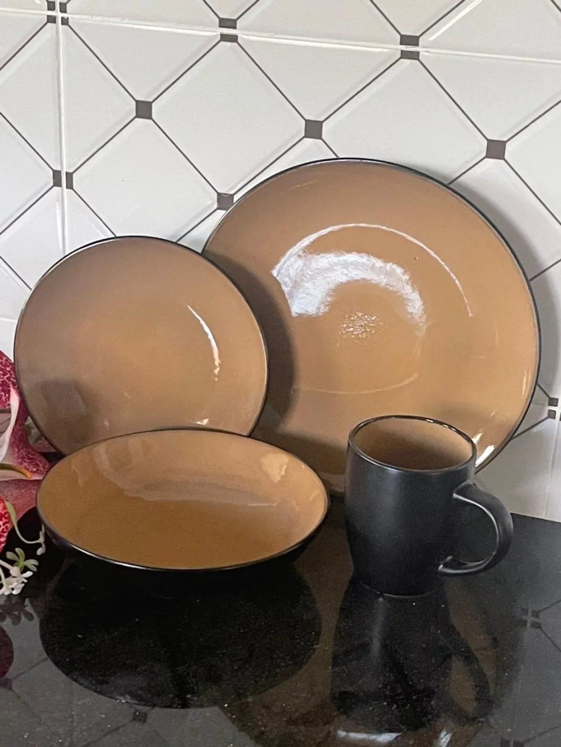 This comprehensive 24-piece ceramic dinner set provides a complete and stylish table setting for six people. The collection includes six full-sized dinner plates, six versatile side plates, six deep bowls perfect for soups and cereals, and six matching cups for beverages. This tableware is constructed from high-quality ceramic material known for its robustness and ability to retain heat. It is available in a sophisticated variety of color options, including rich Maroon, fresh Mint Green, deep Brown Black, classic White, and clean Blue White, allowing for personalization or mixing and matching. This durable and aesthetically pleasing set is designed to enhance the dining experience in modern homes across the region.