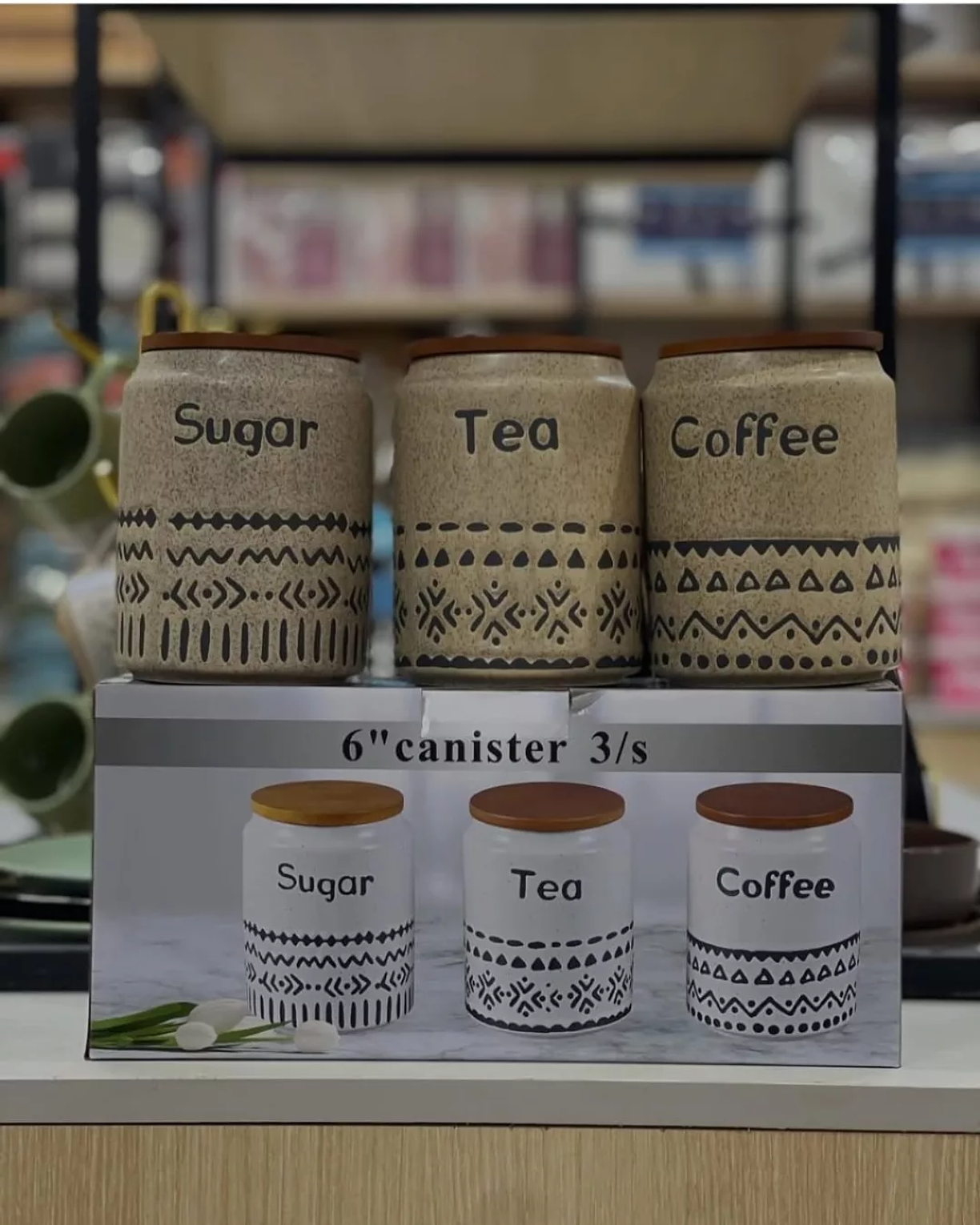 Elevate your kitchen counter organization with this charming 3-piece set of ceramic canisters, designed for both aesthetic appeal and reliable food preservation. Each piece is crafted from durable, high-quality ceramic in warm brown tones, finished with unique, hand-applied-look artisan patterns that add a captivating visual texture to your space. A vital feature of these containers is the airtight seal provided by the wooden lids, which effectively locks in freshness and protects the contents from moisture and air, making them perfect for storing kitchen staples like sugar, tea, and coffee. These canisters are not just storage solutions; they are stylish, functional accents that bring a touch of unique, earthy elegance to any modern or rustic kitchen environment.