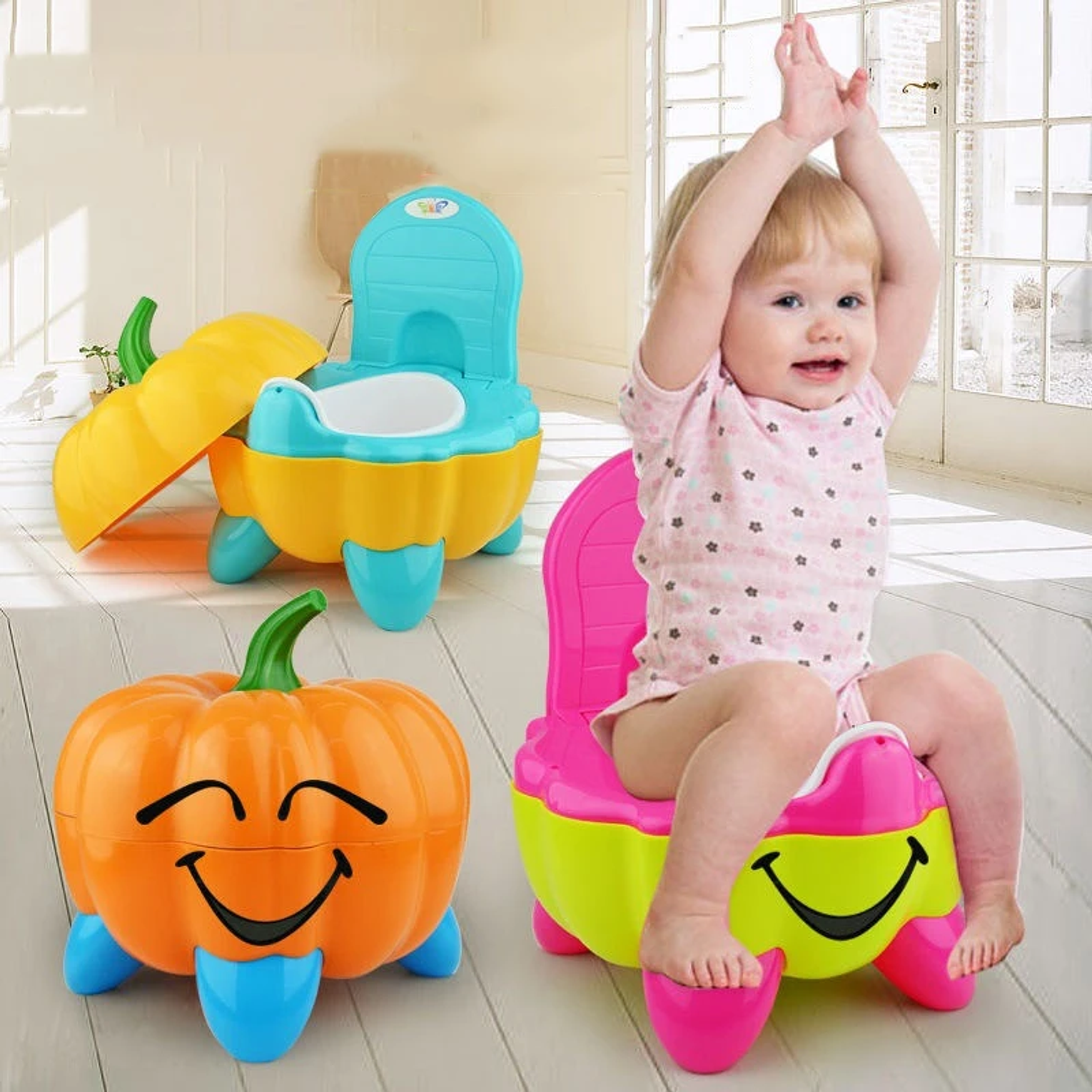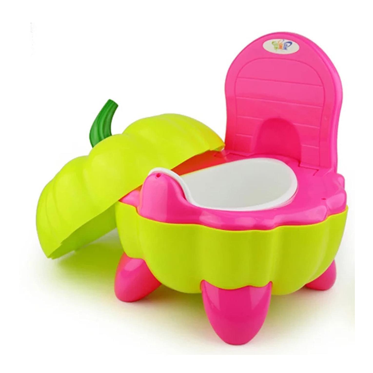 The Enchanted Pumpkin Potty Trainer is ingeniously designed to simplify the transition to independent toilet use for toddlers. Its charming pumpkin shape and bright colors naturally attract the child's interest, transforming a challenging task into an exciting milestone. Safety and hygiene are prioritized with a heightened splash guard that effectively prevents urine spillage for both boys and girls, ensuring a cleaner environment. The potty features a comfortable heightened and thickened backrest for proper support and posture. For parental convenience, the inner bowl is completely removable for quick and simple cleaning. This durable, attractive trainer is available in cheerful pink, orange, and yellow color options.