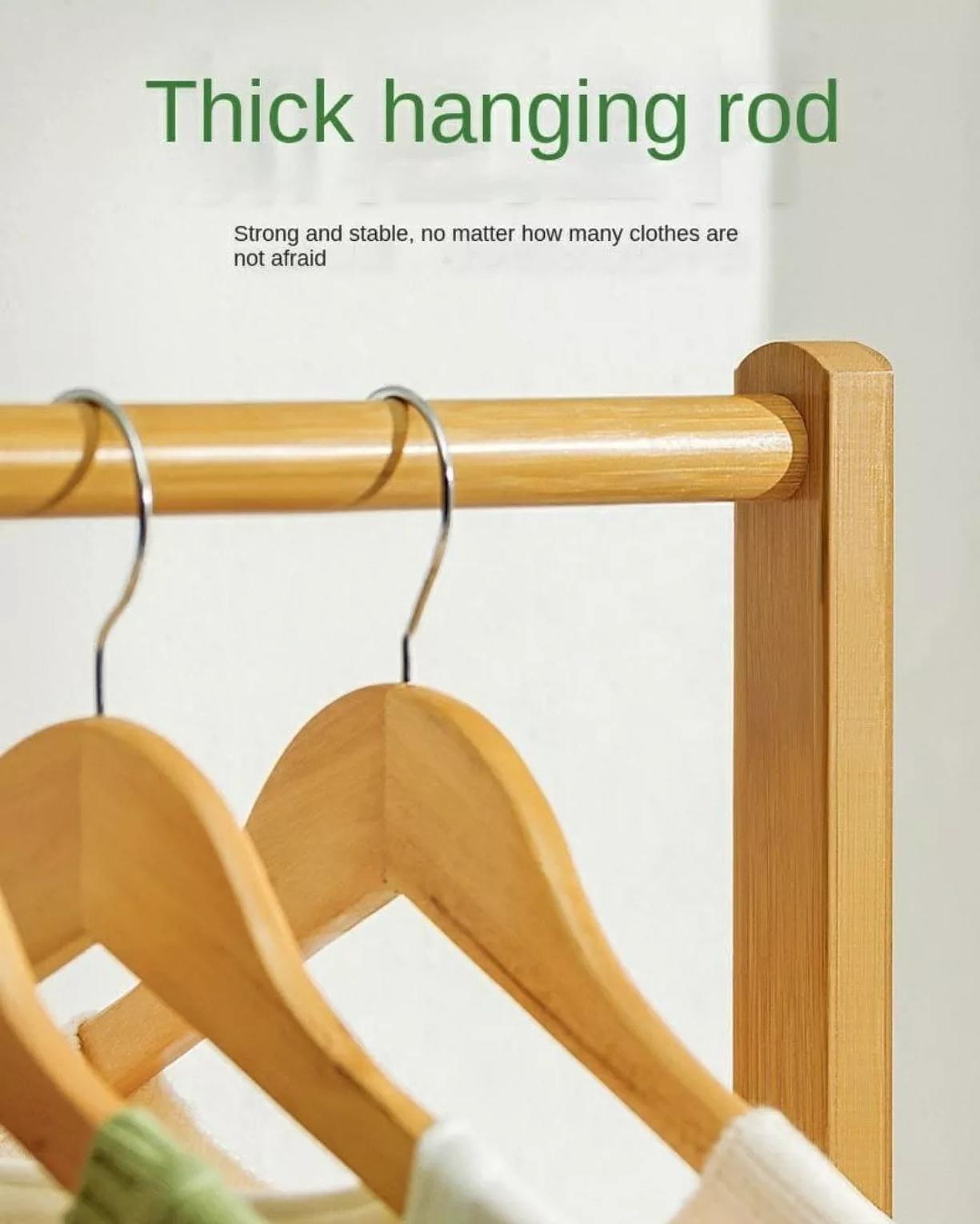 Introduce a touch of sustainable elegance and smart organization into your home with our Natural Bamboo Freestanding Clothes Rack with Shelves. Crafted entirely from premium bamboo material, this rack is not only environmentally friendly but also inherently strong, sturdy, and remarkably durable, promising years of reliable use.