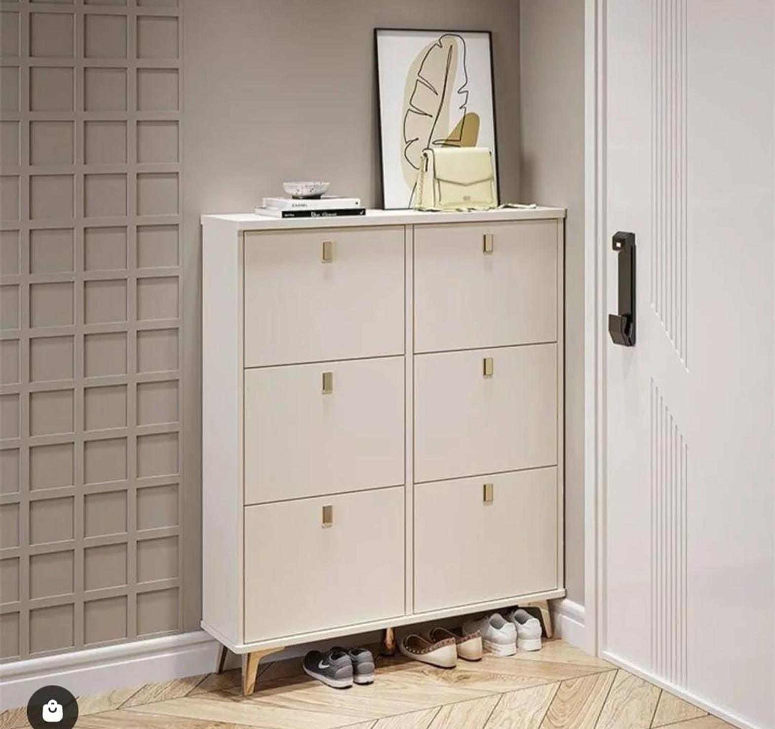 This innovative triple-layer bucket flip shoe rack combines practicality with modern design, offering a sleek and space-saving solution for your footwear storage needs. With three spacious flip compartments, it easily accommodates multiple pairs of shoes, from sneakers to sandals, while keeping them neatly organized and protected from dust. The added hanger feature provides extra storage for items like scarves, hats, or accessories, making it a perfect addition to any entryway, closet, or bedroom. The rack's compact design allows it to fit seamlessly into small spaces, while the sturdy construction ensures long-lasting durability. Whether you’re organizing seasonal shoes or keeping your everyday footwear accessible, this rack offers both convenience and style.
