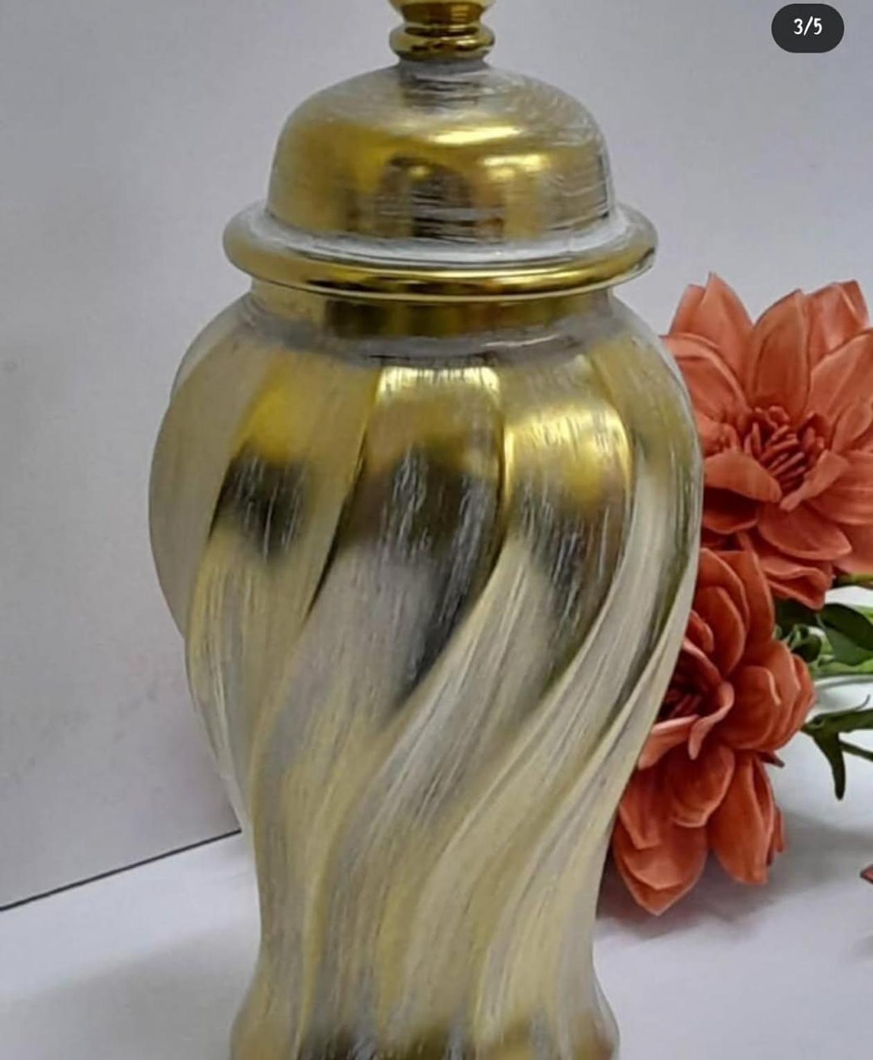 Elevate your interior with this elegant ceramic vase featuring refined golden stripes — a striking yet subtle statement piece for any room. Its smooth, neutral-toned ceramic body is beautifully contrasted by the metallic detailing, creating a balanced blend of modern charm and timeless sophistication. Whether displayed on its own, holding dried botanicals, or paired with fresh blooms, this vase adds a touch of understated luxury to shelves, coffee tables, or entryway consoles. Its clean form and rich accents make it a versatile décor item that complements both minimalist and contemporary spaces. Perfect as a gift or a personal home upgrade, it’s a piece that quietly commands attention.