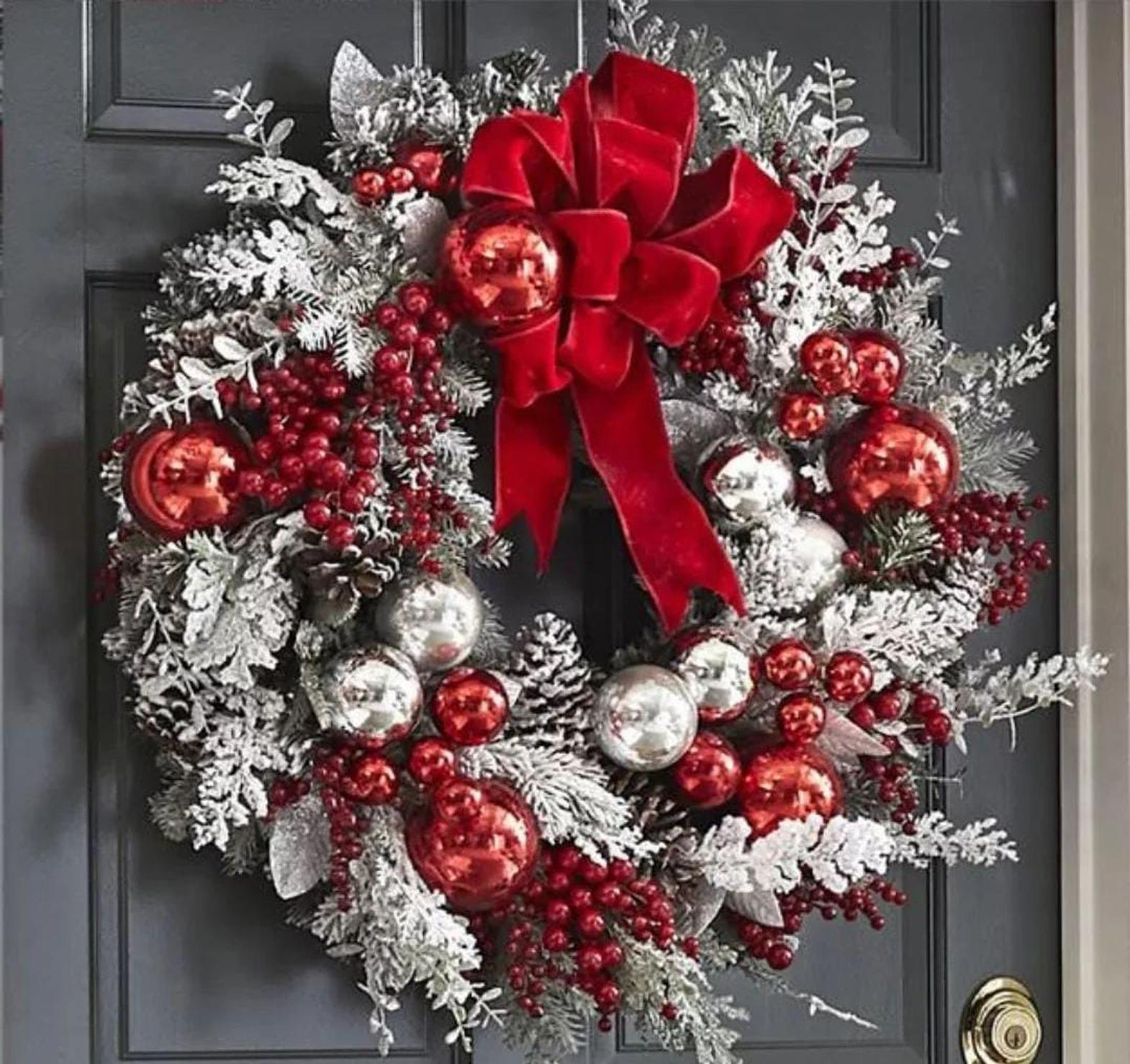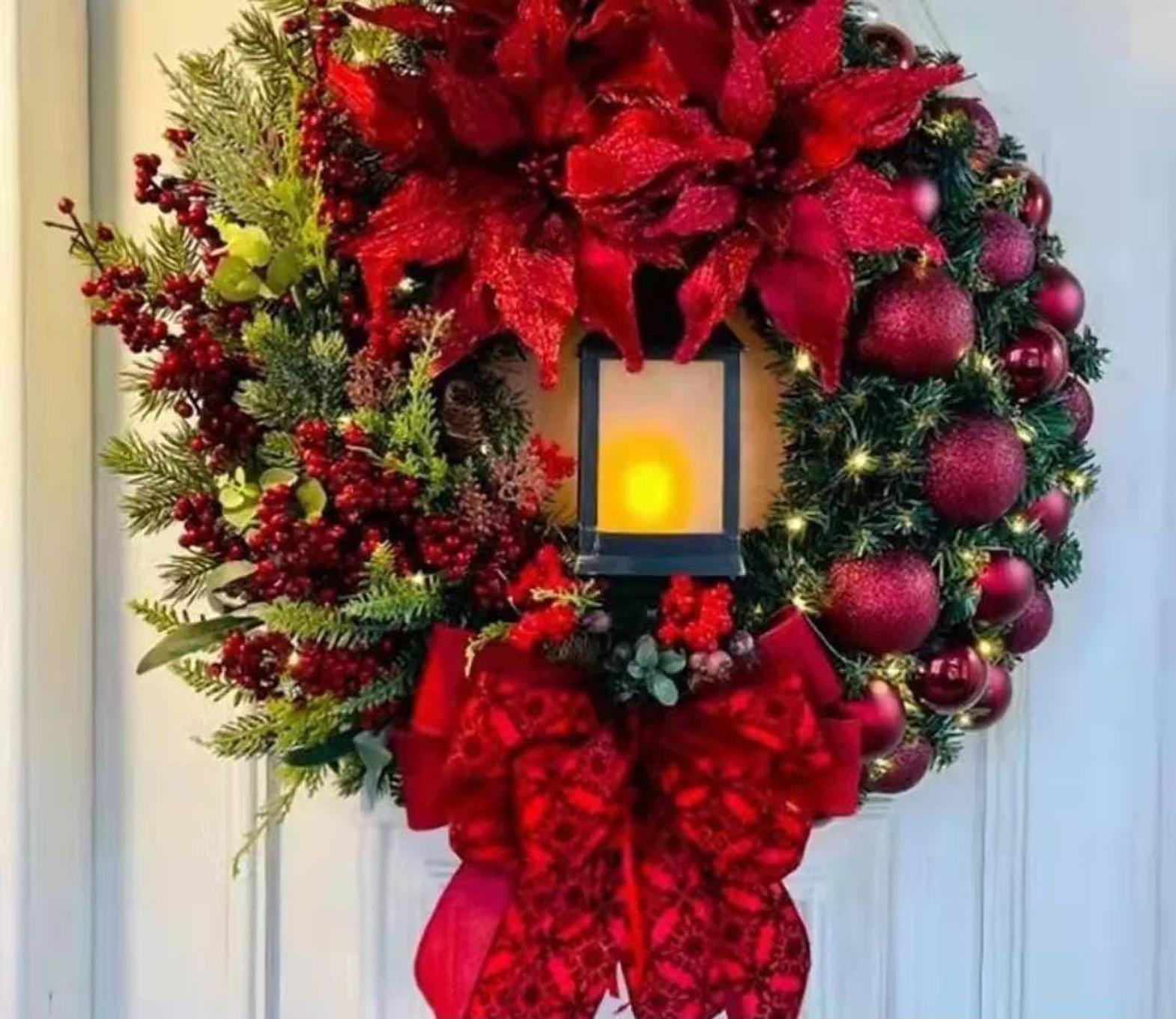Our Christmas door wreath decor is the perfect way to greet guests and set a joyful tone for the season. Crafted with lush greenery, vibrant red berries, pinecones, and sparkling accents, this wreath captures the essence of a festive winter landscape. Its durable construction ensures it can withstand the elements, making it ideal for both indoor and outdoor use. Whether hung on your front door, in a hallway, or above a fireplace, this wreath instantly enhances your home’s holiday appeal, creating a warm, welcoming atmosphere that embraces the spirit of Christmas.