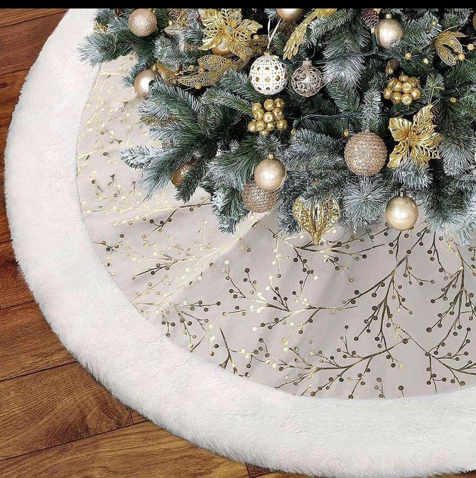 This Christmas tree skirt is the perfect addition to complete your holiday decor, crafted with high-quality materials that bring warmth and charm to your Christmas tree. Featuring a rich, textured fabric and festive colors or patterns, it not only enhances the base of your tree but also helps protect your floor from fallen needles or tree sap. Whether adorned with shimmering accents, plaid prints, or a simple elegant design, this tree skirt complements a variety of holiday themes, creating a cozy, festive foundation for your tree and gifts. Its timeless appeal makes it a cherished part of your seasonal decor for years to come.