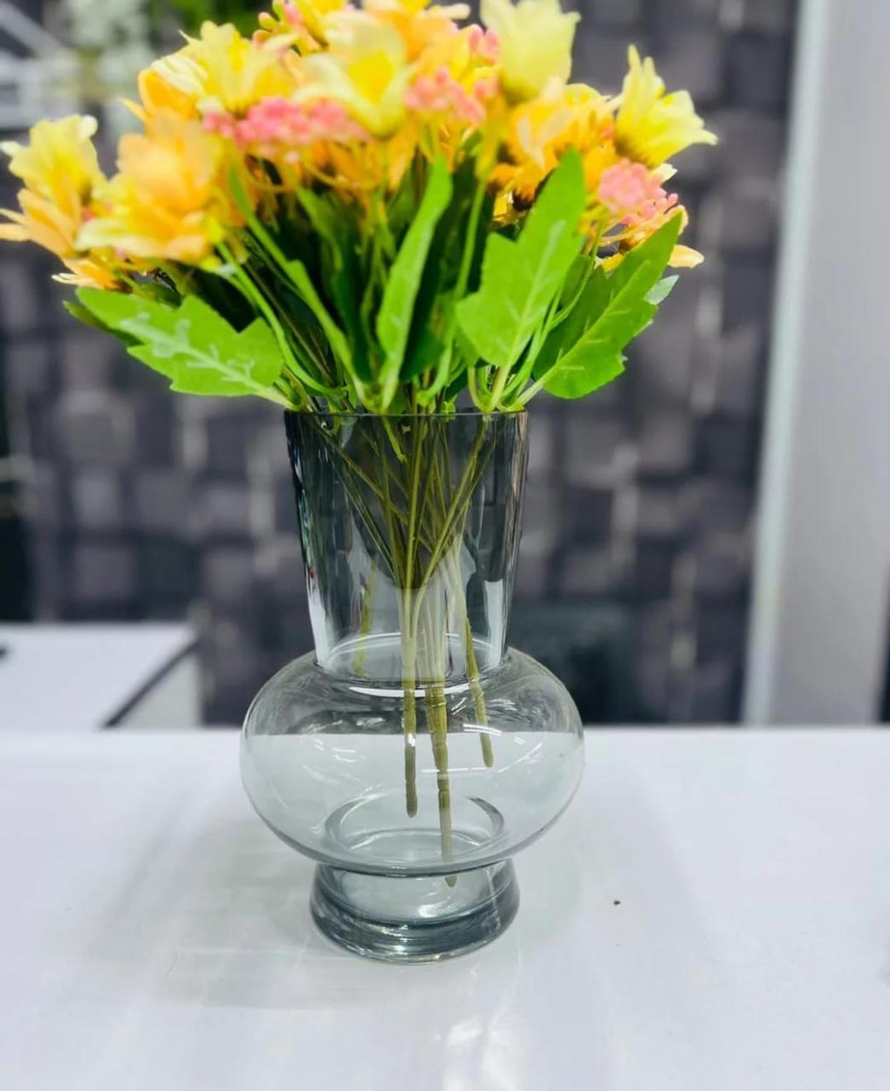 Sleek and sophisticated, the Clear Black Crystal Vase is a striking statement piece that effortlessly complements both contemporary and classic interiors. Crafted from high-quality crystal with a smoky black finish, it captures and reflects light beautifully, adding depth and drama to any room. Whether styled with fresh blooms, dried arrangements, or left as a standalone accent, its clean silhouette and subtle transparency bring an understated elegance to your home décor. Durable yet delicate in appearance, this vase is a perfect fusion of artistry and function—ideal for those who appreciate decor that speaks quietly, yet boldly.