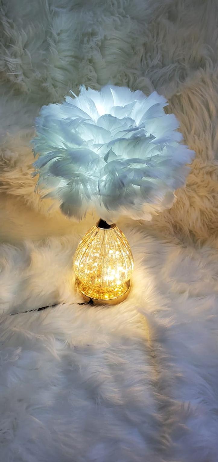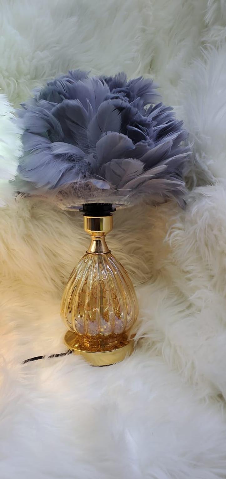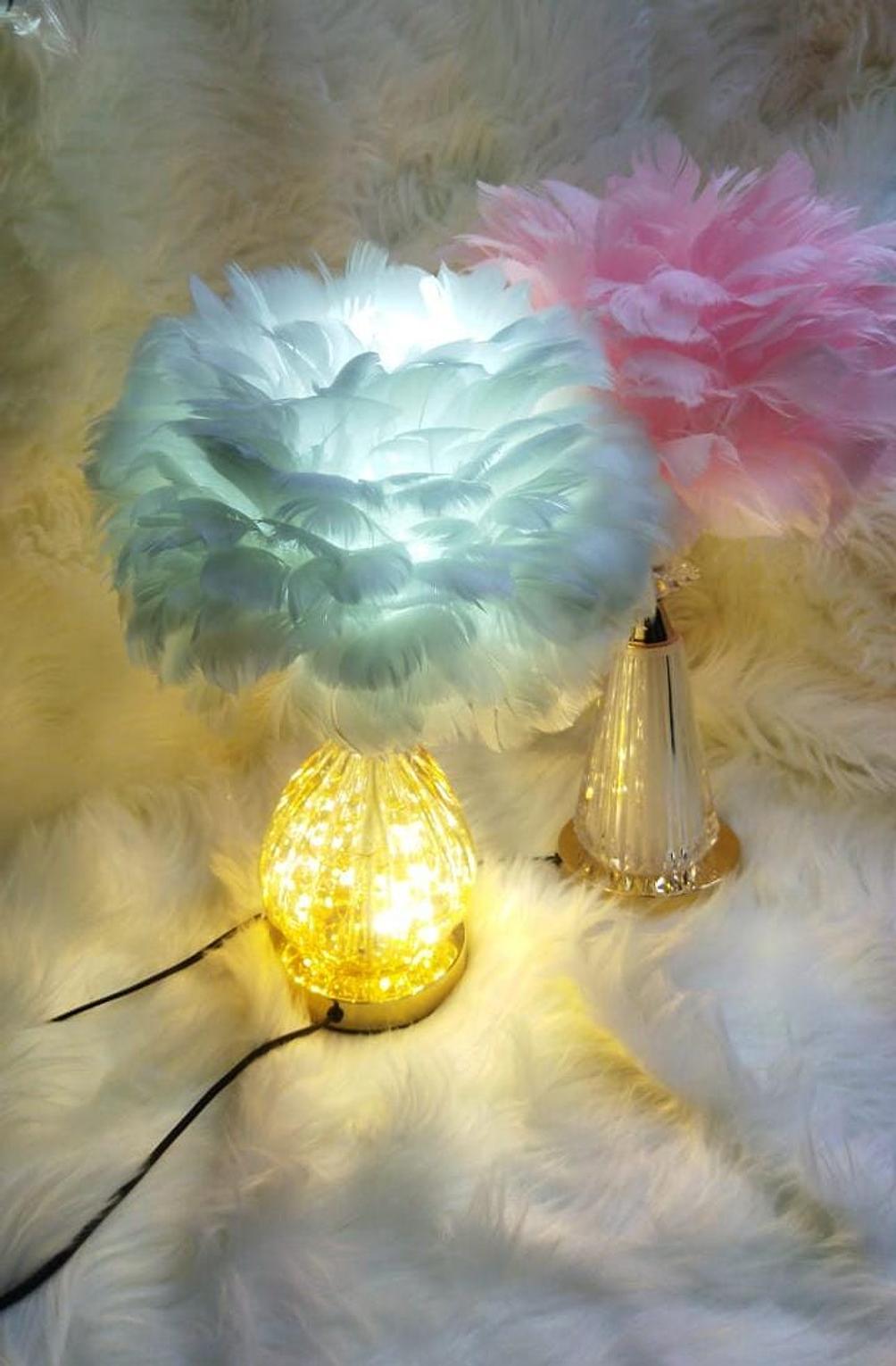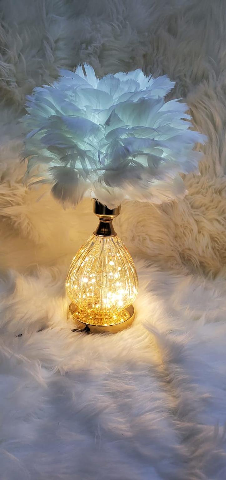 Introducing the Crystal Feather Table Lamp, a stunning decorative piece that combines sophistication with modern design. This exquisite lamp features soft, luxurious feathers available in white, pink, and grey, creating a dreamy and ethereal ambiance for any room. The lamp's base is available in a variety of styles, offering options that suit your taste—whether you're looking for a sleek metallic finish, a crystal-clear stand, or a chic marble base.