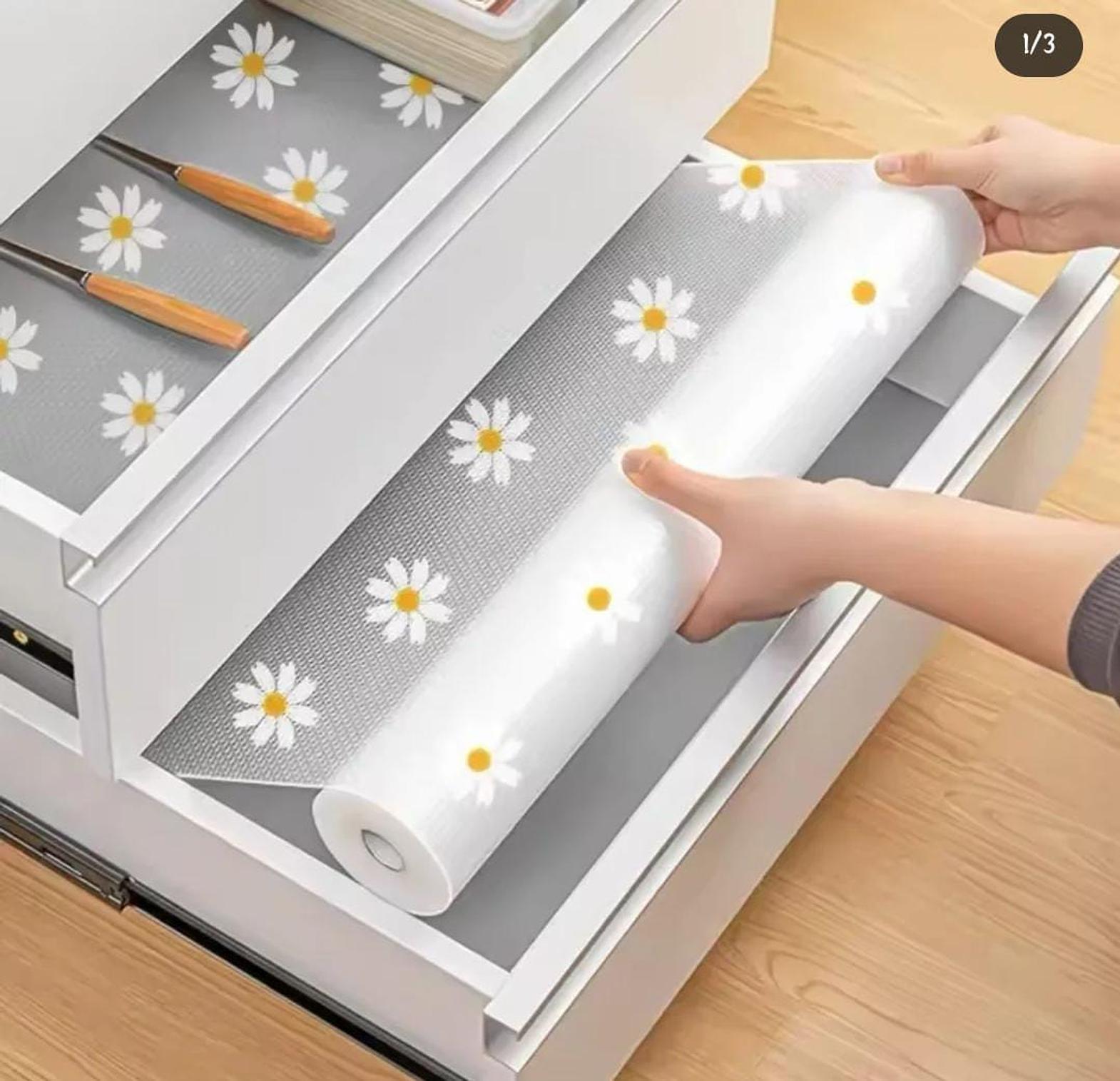 These liners not only protect your drawers and shelves from spills, stains, and scratches but also add a touch of charming style with their adorable daisy pattern. Made from oil-proof and moisture-resistant material, they're easy to clean and maintain, ensuring your cabinets stay looking their best. Whether you're organizing your kitchen, updating your décor, or simply want to add a touch of whimsy to your space, our Daisy Pattern Kitchen Drawer Liners are the perfect solution.