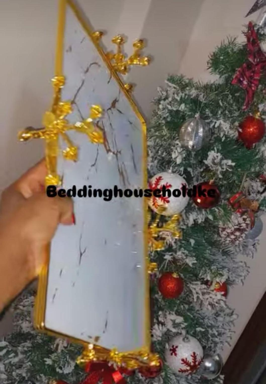 Add a touch of sophistication to your dining table or vanity with our Decorative Dining/Cosmetics Vanity Tray. Crafted with an eye-catching design, this versatile tray serves as both a decorative accent and a practical storage solution. Whether you're organizing cosmetics, perfumes, jewelry, or serving drinks and appetizers, it elevates the presentation of your items with ease. The elegant finish and sturdy construction ensure long-lasting use, while its sleek design complements any décor, from modern to traditional. Perfect for dressing tables, bathrooms, or dining areas, this tray helps you keep everything neatly arranged while adding a chic touch to your space.