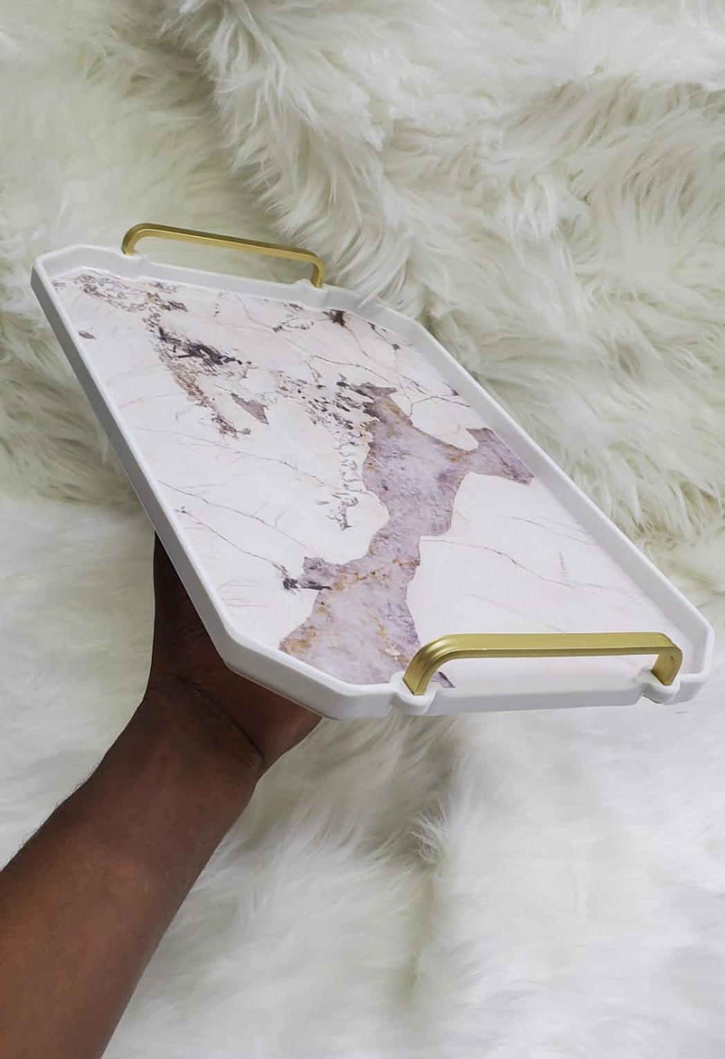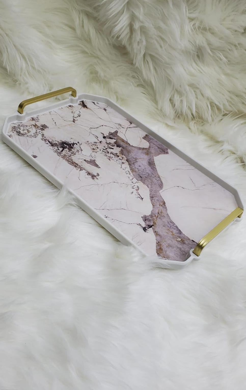 Perfect for serving drinks, appetizers, or as a decorative centerpiece, this versatile tray combines practicality with a sleek, modern aesthetic. The marble effect offers a chic and timeless look that complements any home décor. Whether used for formal occasions or everyday convenience, the Decorative Marble Textured Serving Tray is the ideal blend of style and functionality for your home.