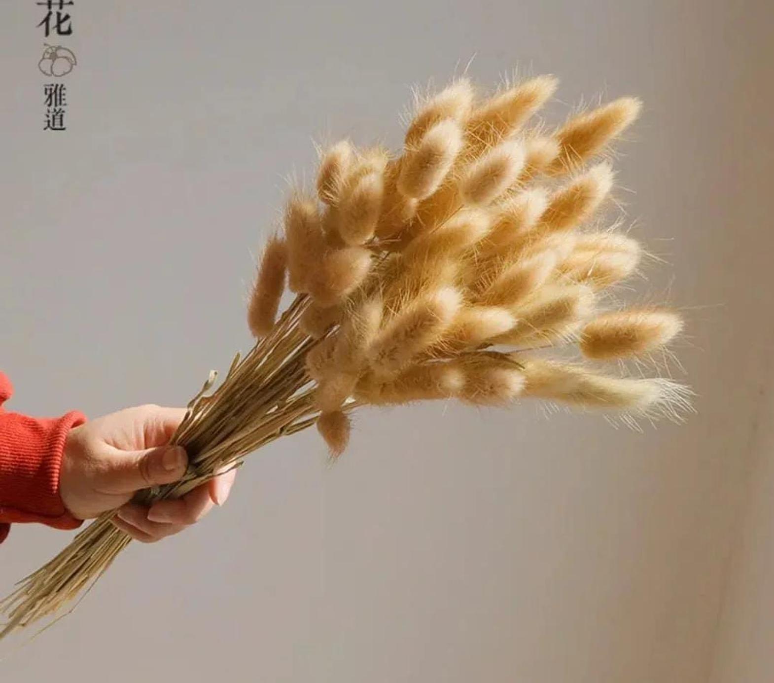 Bring warmth and texture to your home with dried natural bunny tail grass, a timeless decorative element that blends effortlessly with any interior style. Featuring soft, fluffy plumes in neutral tones, this grass adds an airy, organic charm to vases, centerpieces, and floral arrangements. Its long-lasting, low-maintenance nature makes it ideal for enhancing living rooms, bedrooms, or event décor without the need for watering or upkeep. Whether used alone for a minimalist touch or mixed with other dried flowers, bunny tail grass brings a cozy, bohemian elegance to any space.