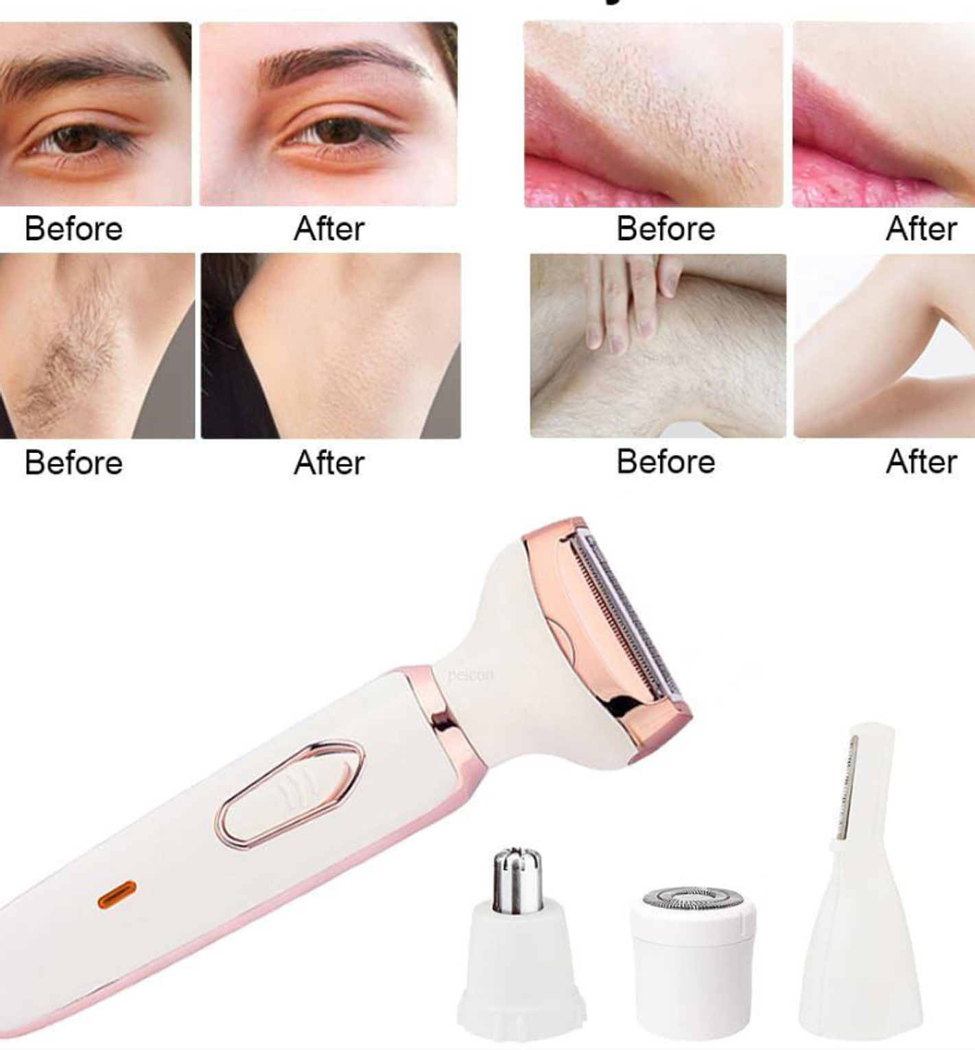 Discover seamless and effective hair removal with this premium, multi-purpose rechargeable grooming tool. Engineered with four interchangeable heads, this kit offers versatile and precise solutions for every area, including the bikini line, underarms, face, and legs. Its hypoallergenic stainless steel blades operate efficiently at 7000 RPM, delivering a smooth finish without the common issues of razor bumps or post-shave itching. Fully portable and USB rechargeable, this device offers 60 minutes of working time after only 1.5 hours of charging. The convenience of wet and dry use is complemented by a clear LED display, providing essential battery status information. This quality system ensures a comfortable and thorough grooming experience for a consistently sleek look.