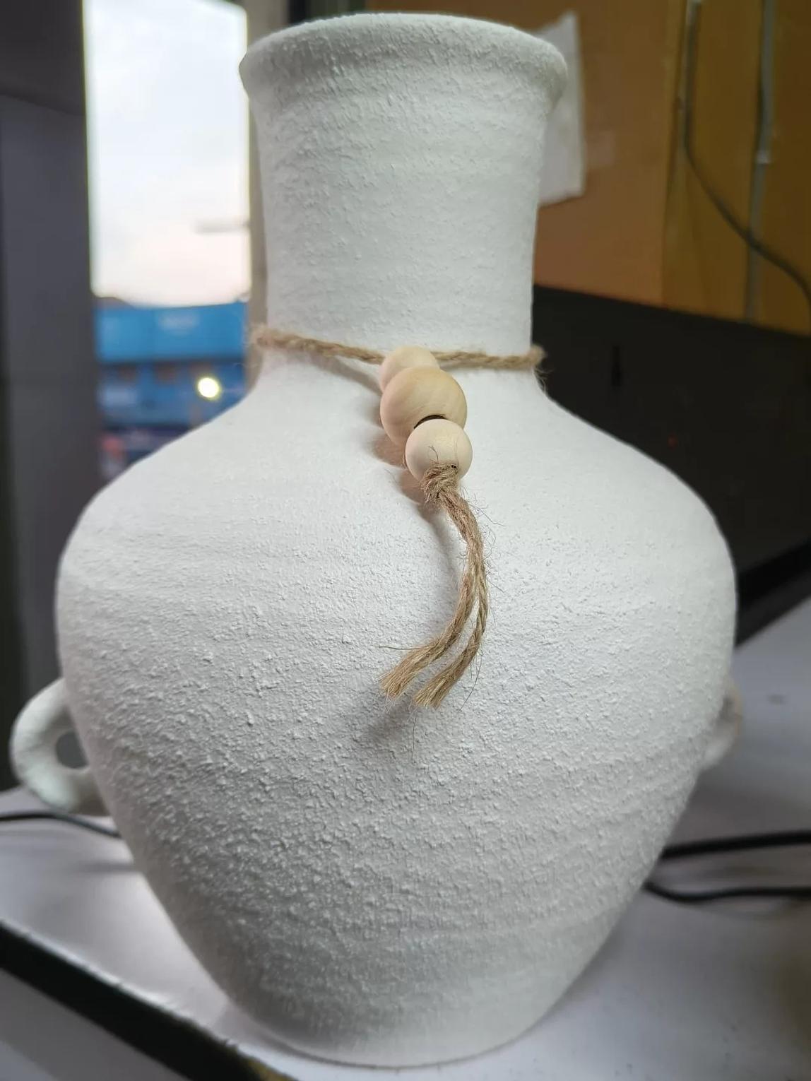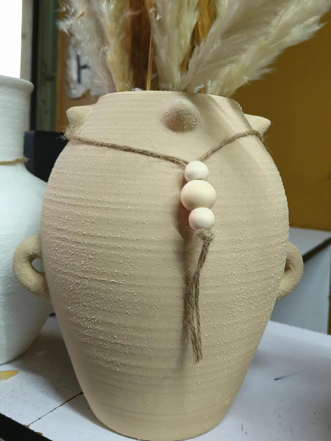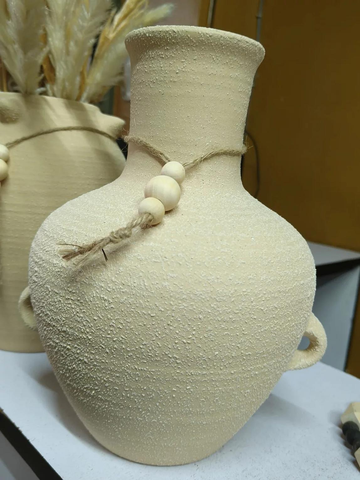 Infuse your living space with the timeless allure of antiquity with the Aegean Echoes Ceramic Vase. This exquisite indoor pot is a captivating homage to Ancient Greek vase styles, featuring a gracefully curved silhouette and distinctive dual ear handles that evoke historical charm. Crafted from high-quality ceramic, the vase boasts a unique textured finish that adds depth and character, mimicking the aged beauty of unearthed artifacts. Adorned with a simple, rustic rope and wooden beads around its slender neck, the Aegean Echoes vase perfectly blends minimalist design with bohemian and classical aesthetics. Ideal for showcasing dried botanicals, pampas grass, or simply standing alone as a sculptural art piece, it serves as a stunning focal point in living rooms, hallways, or offices. Its versatile, neutral tone seamlessly integrates with various interior design themes, from modern to rustic to Mediterranean. This ceramic pot is a must-have for those seeking ancient Greek vase replicas, textured ceramic decor, boho home accents, decorative indoor planters, and unique rustic vases.
