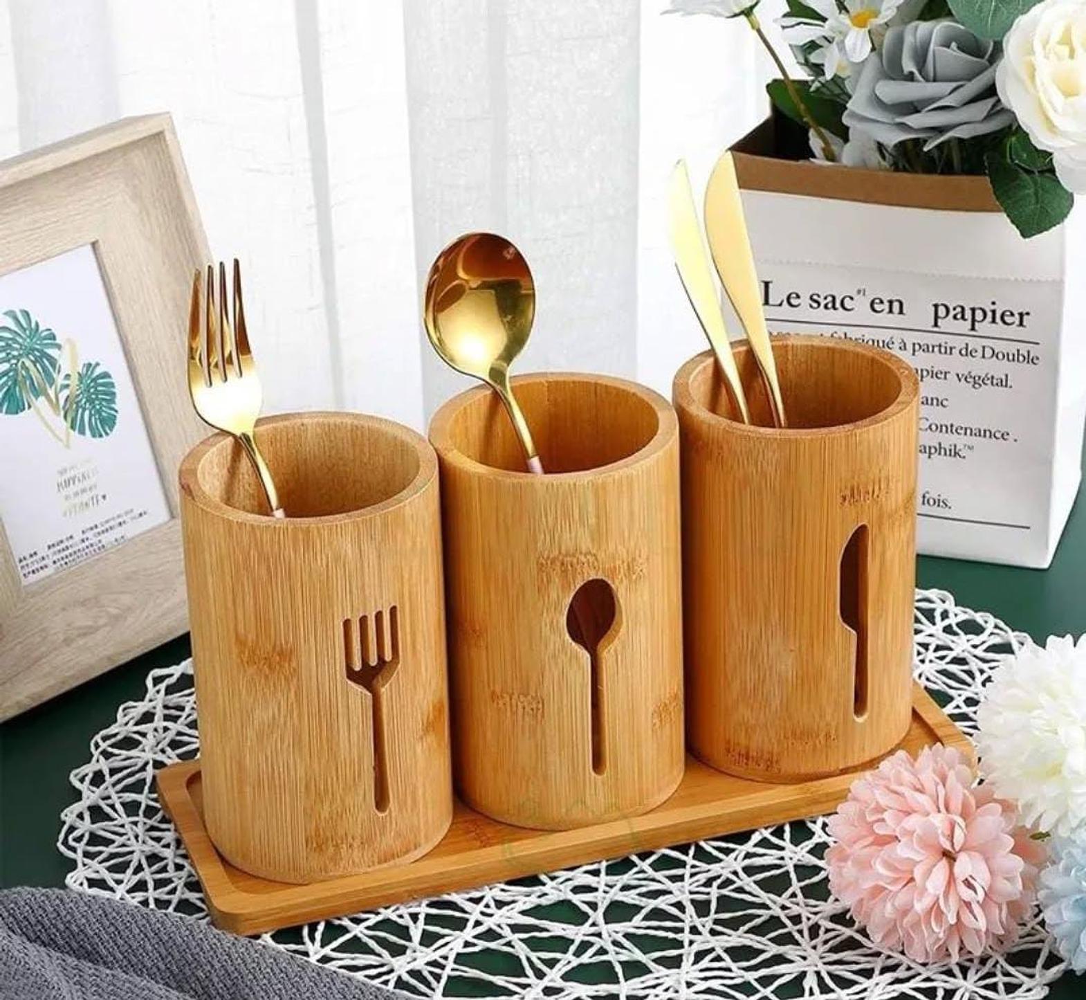 Designed with both functionality and sustainability in mind, this Eco-friendly 4-in-1 Bamboo Cutlery Holder is the perfect addition to any eco-conscious kitchen. Made from natural bamboo, known for its strength and environmental benefits, this holder features a sleek, minimalistic design that complements any kitchen decor. The bamboo base provides stability, while the four compartments allow for easy organization of your cutlery, utensils, and other kitchen tools. Whether you're looking to reduce clutter or embrace a more sustainable lifestyle, this cutlery holder offers a simple, stylish solution that is both durable and eco-friendly, making it an ideal choice for those who prioritize both practicality and the planet.