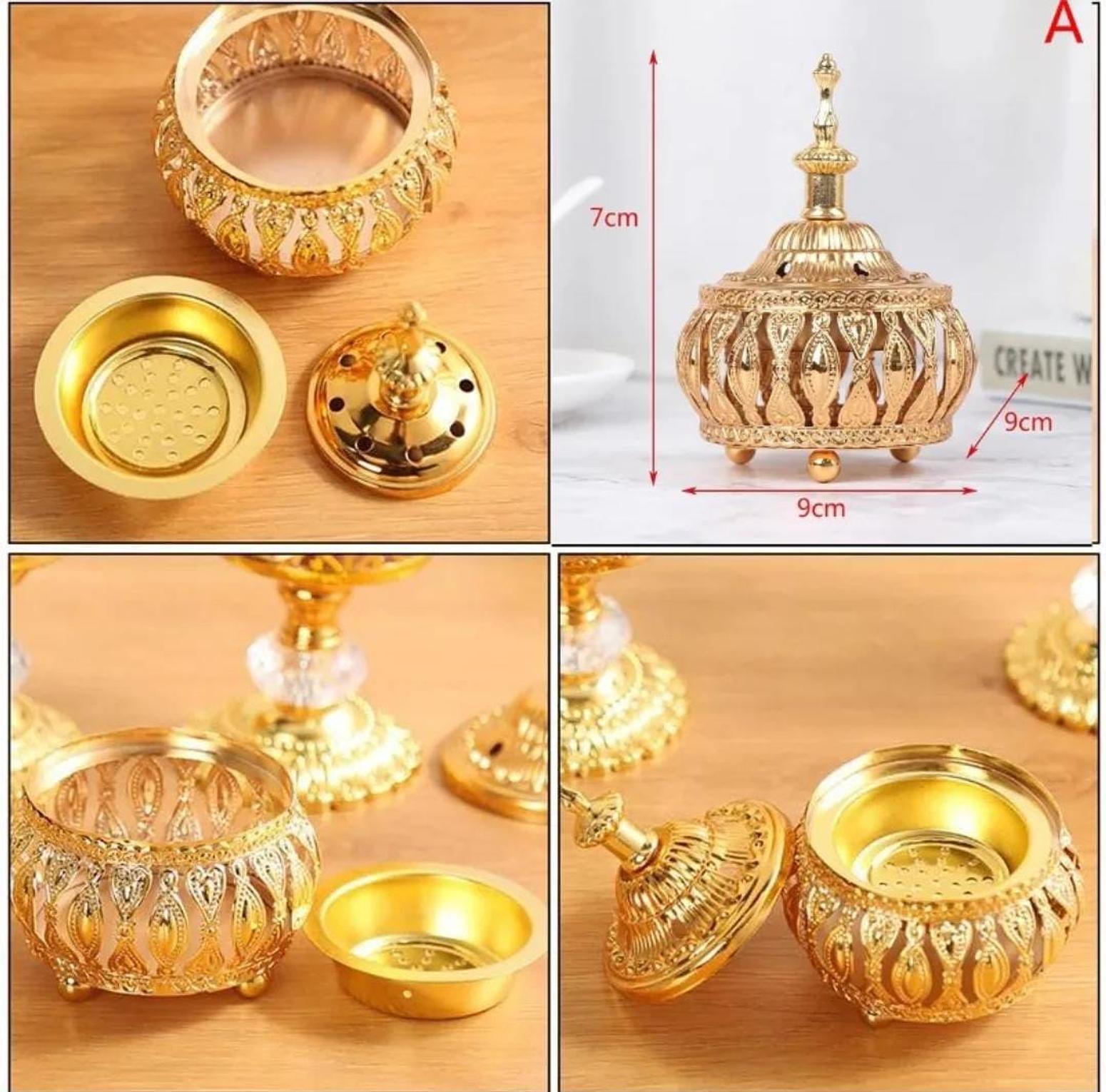 Celebrate the essence of Eid with this beautifully crafted metallic incense tower, designed not only as a functional piece but also as a stunning home ornament. Featuring intricate details and a graceful "Eid Mubarak" inscription, this tower serves as both a symbol of festivity and a serene source of aromatic ambiance. Ideal for burning your favorite bakhoor or incense, it gently diffuses scent throughout your space, creating a warm and welcoming atmosphere for family and guests. Whether placed on a mantle, side table, or as a centerpiece, this decorative tower elevates your Eid decor with its timeless elegance and cultural significance—making it a cherished addition to your festive celebrations.