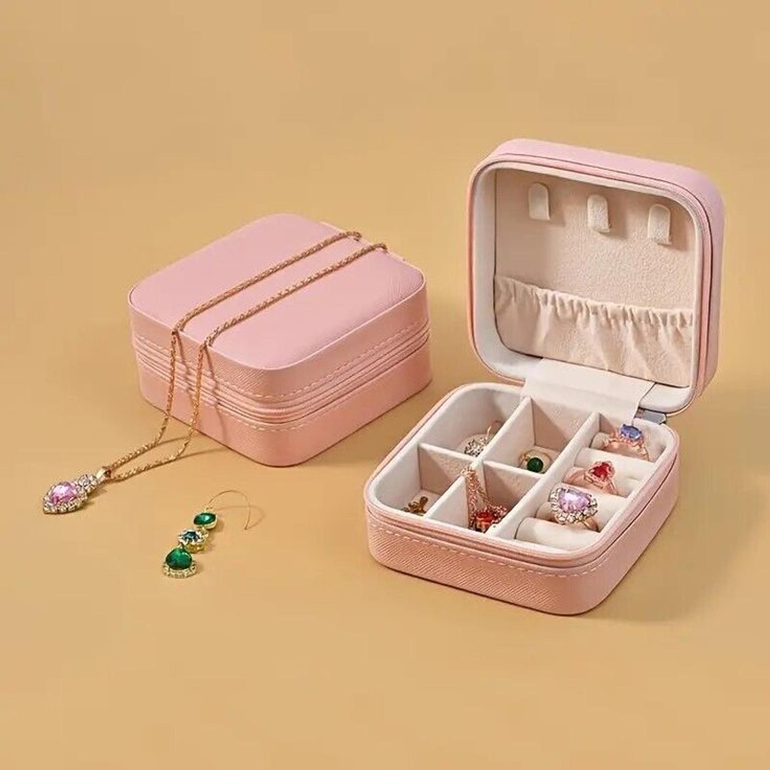 Keep your valuable collection organized and protected while traveling with this beautifully designed mini storage box. The exterior boasts a refined, elegant faux leather finish, offering both style and resilience against everyday wear. Inside, the case is meticulously lined with soft, protective velvet, ensuring a gentle cushion for all your pieces. The interior features smart, multi-compartment structuring, including dedicated ring slots, small sections for earrings, and specialized pockets to secure necklaces, keeping them safely separated and easy to find. Highly portable and perfectly sized, this display box is an essential accessory for anyone who wants to maintain the condition of their jewelry during short trips or extended journeys, available in four attractive color options.