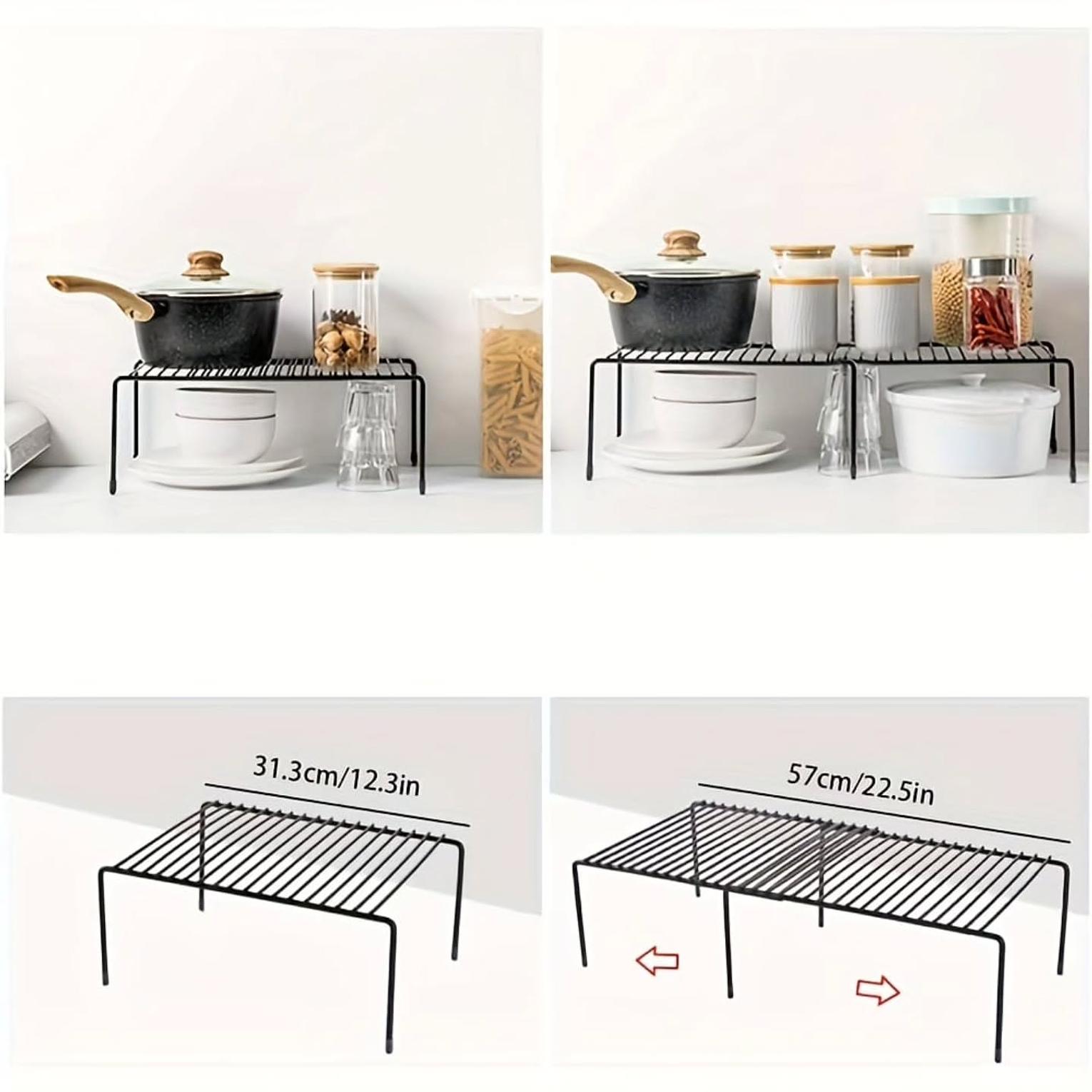 Keep your home organized with the expandable carbon steel shelf raiser, a versatile storage solution designed for kitchens, bathrooms, offices, and more. With a size of 32cm that expands up to 57cm, this sturdy organizer adapts to your needs, providing extra space for dishes, pantry items, toiletries, or office supplies. Its 14.5cm height and 24.3cm width make it compact yet practical, while the high-quality carbon steel build ensures durability and long-term use. Available in classic white and black, this multipurpose shelf raiser combines functionality with modern style, helping you create a neat, clutter-free space.