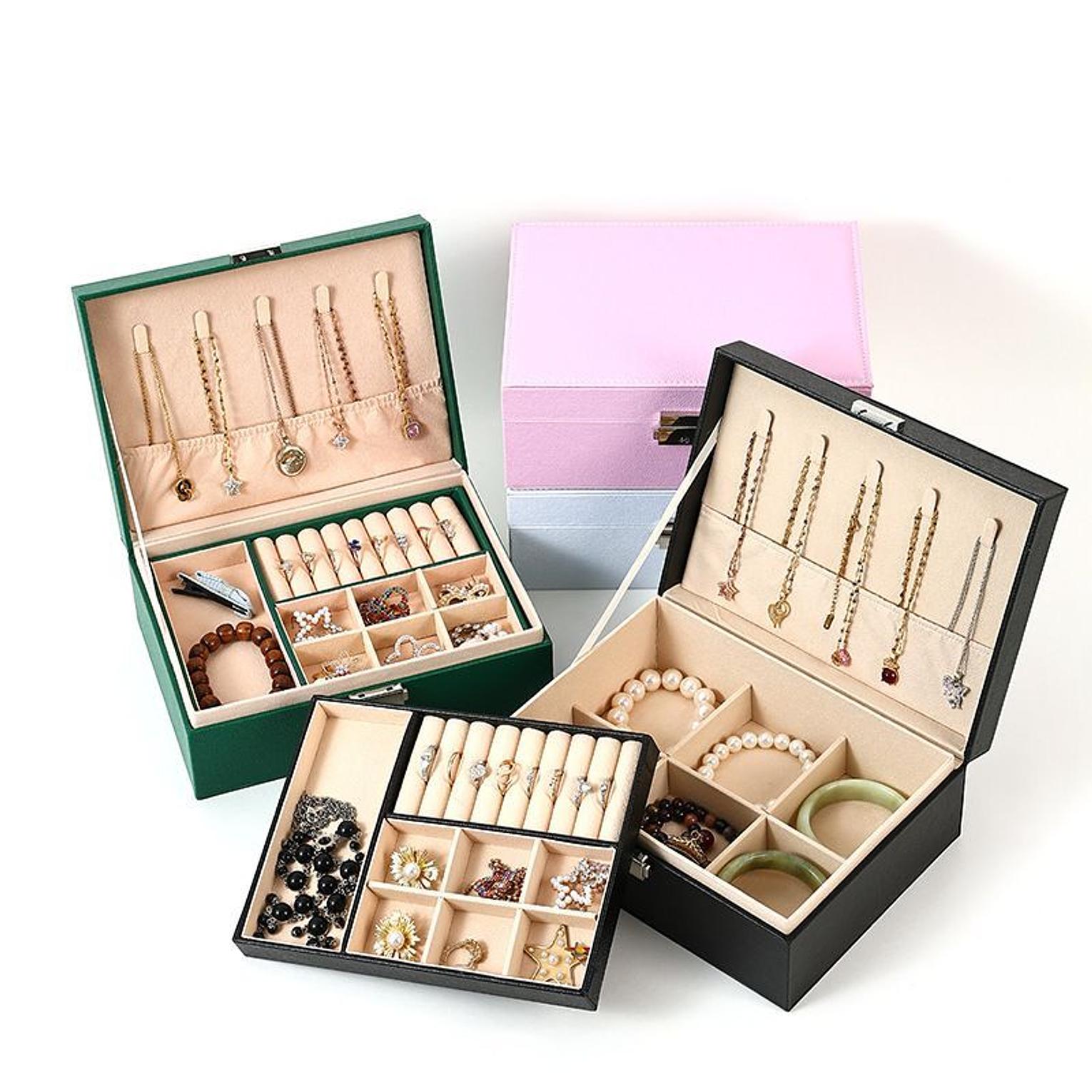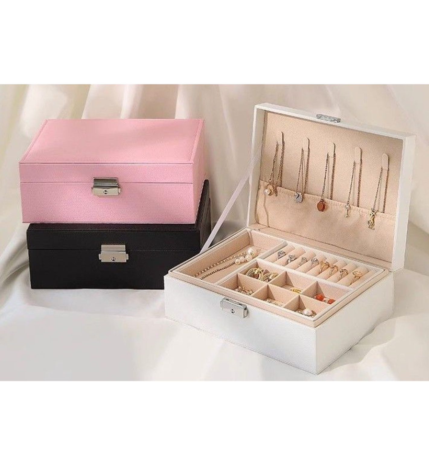 Organize your cherished accessories beautifully with this sophisticated, large-capacity storage solution designed for superior protection. The case is constructed using premium PU leather fabric, offering excellent resistance to wear, moisture, and dust, ensuring the longevity of both the box and its contents. Inside, the design is highly practical, featuring a plush velvet lining and removable dividers that allow for flexible storage of both small items like rings and earrings, and larger pieces such as watches or bangles. A reliable snap lock provides an added layer of security, keeping your valuable items protected from accidental spills or loss. Available in black, pink, and white, this organizer is a high-quality home item that combines a refined aesthetic with unmatched functionality for comprehensive jewelry storage.