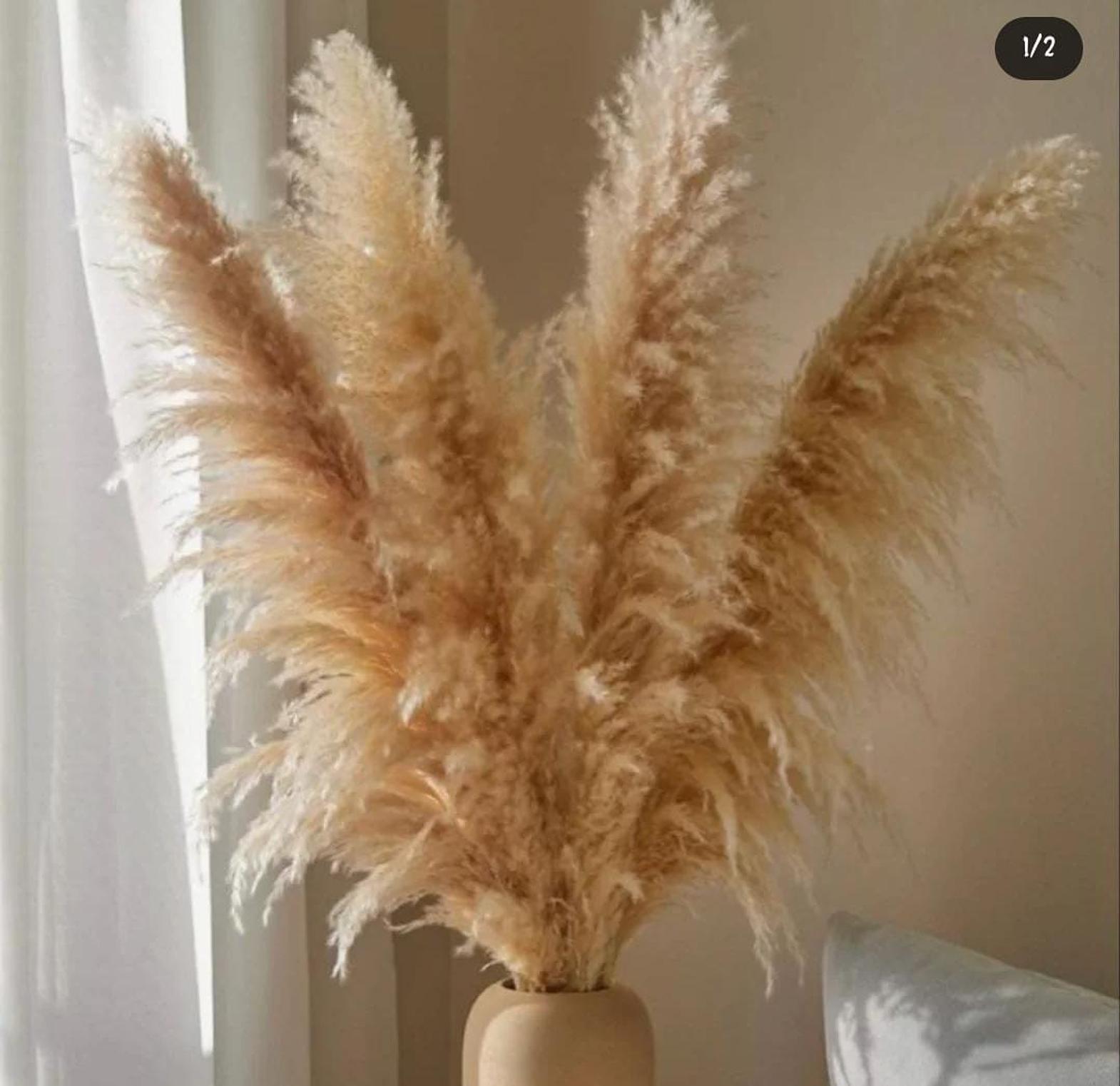 Bring warmth and elegance to your home with this stunning large pampas grass decor, a timeless piece that effortlessly enhances any setting. With its soft, feathery plumes and grand height, it creates a dreamy, bohemian ambiance perfect for living rooms, bedrooms, or event décor. The naturally dried grass offers long-lasting beauty with minimal maintenance, making it an eco-friendly and stylish alternative to fresh flowers. Whether displayed in a statement vase or incorporated into a floral arrangement, its neutral tones and voluminous texture add depth and charm, transforming any space into a cozy, modern retreat.
