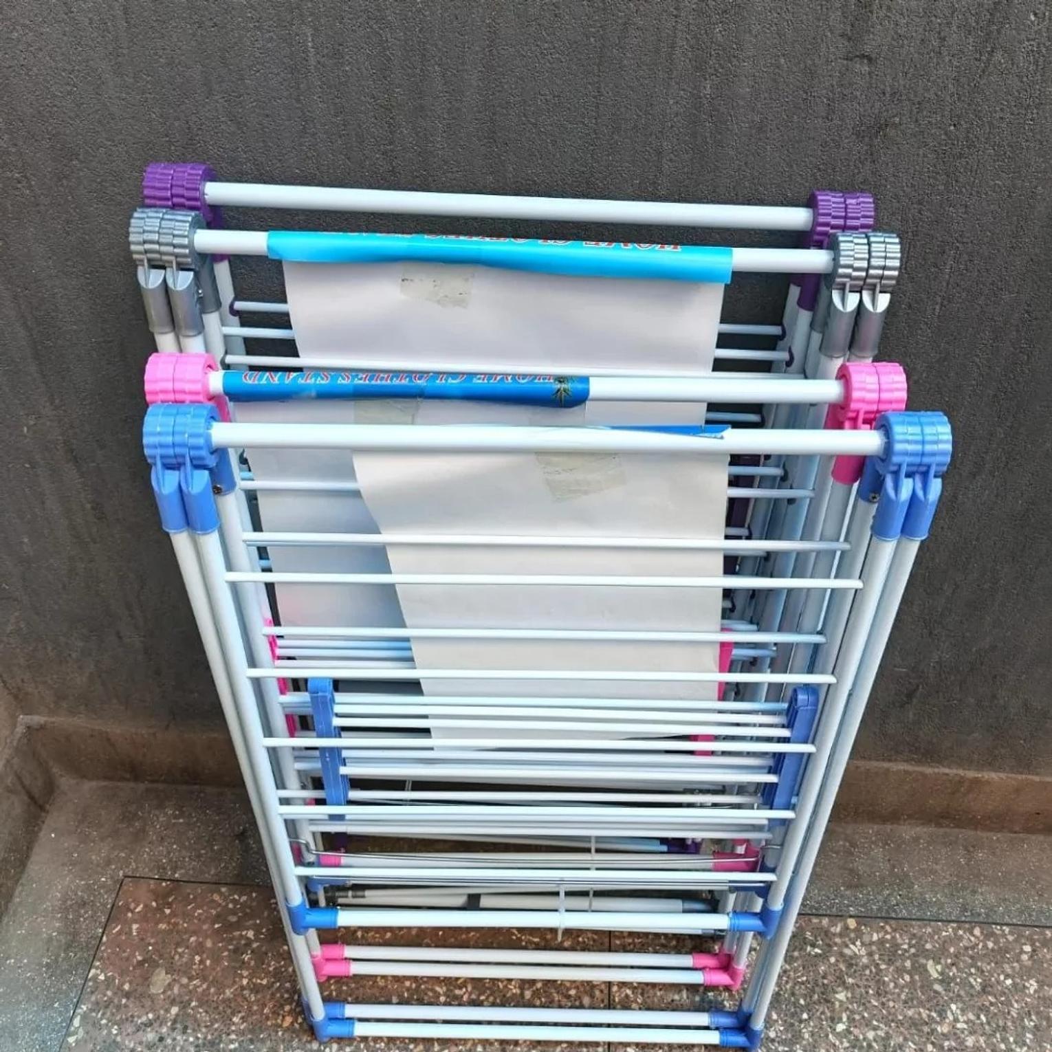 Simplify your laundry routine with this foldable and portable cloth drying rack—a sturdy, lightweight solution for air-drying clothes anywhere, anytime. Built with durable metal or reinforced plastic frames, it offers ample space across multiple tiers for drying garments, towels, or delicate items with ease. Its collapsible design allows for quick storage in tight spaces, making it perfect for apartments, balconies, or travel. Whether you're drying clothes under the sun or inside on rainy days, this rack ensures your laundry dries evenly and neatly without the need for a bulky dryer. Practical, portable, and eco-friendly—this rack is a must-have for every modern home.