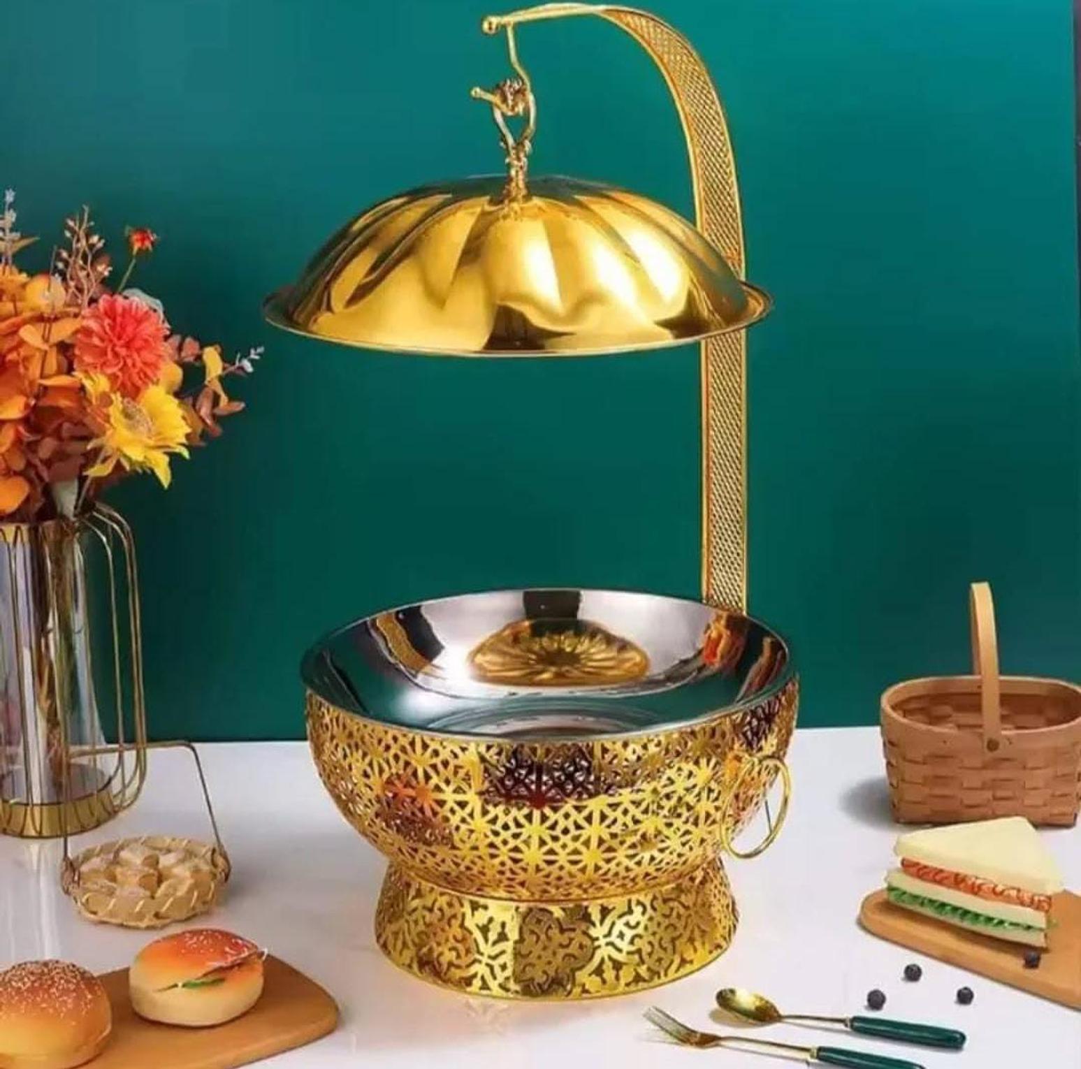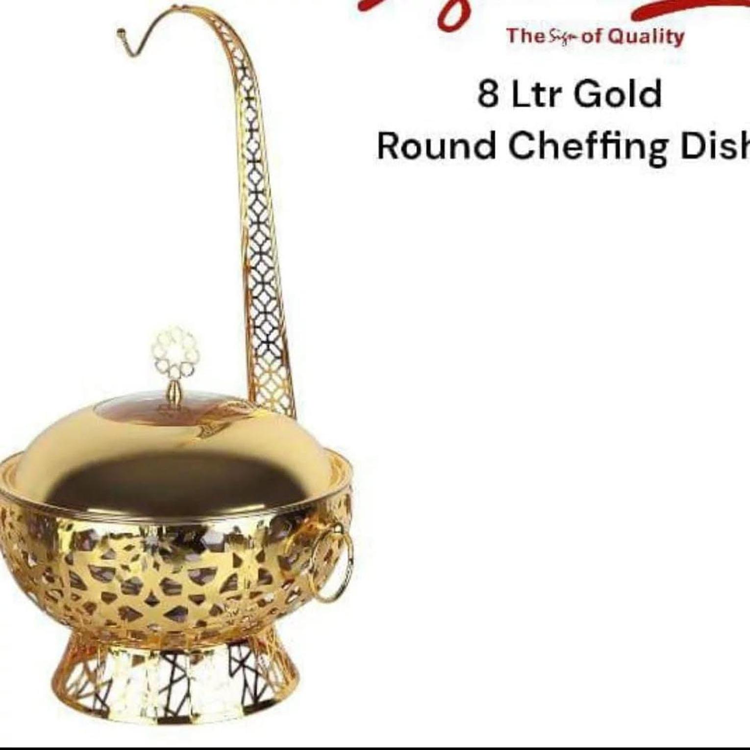 Serve your meals in style with our Gold Round Chafing Dish, designed to offer both sophistication and practicality. With an 8-liter capacity, this chafing dish is ideal for large gatherings, buffets, and special occasions, ensuring that your food stays at the perfect temperature for hours. The gold-tone finish adds a touch of luxury to any dining setup, while the sturdy construction ensures durability and stability. Featuring a convenient lid and fuel holder, this chafing dish is designed for ease of use and effortless maintenance, making it the perfect choice for catering or home entertaining. Whether you're serving appetizers, entrees, or side dishes, this chafing dish elevates both the presentation and functionality of your event.