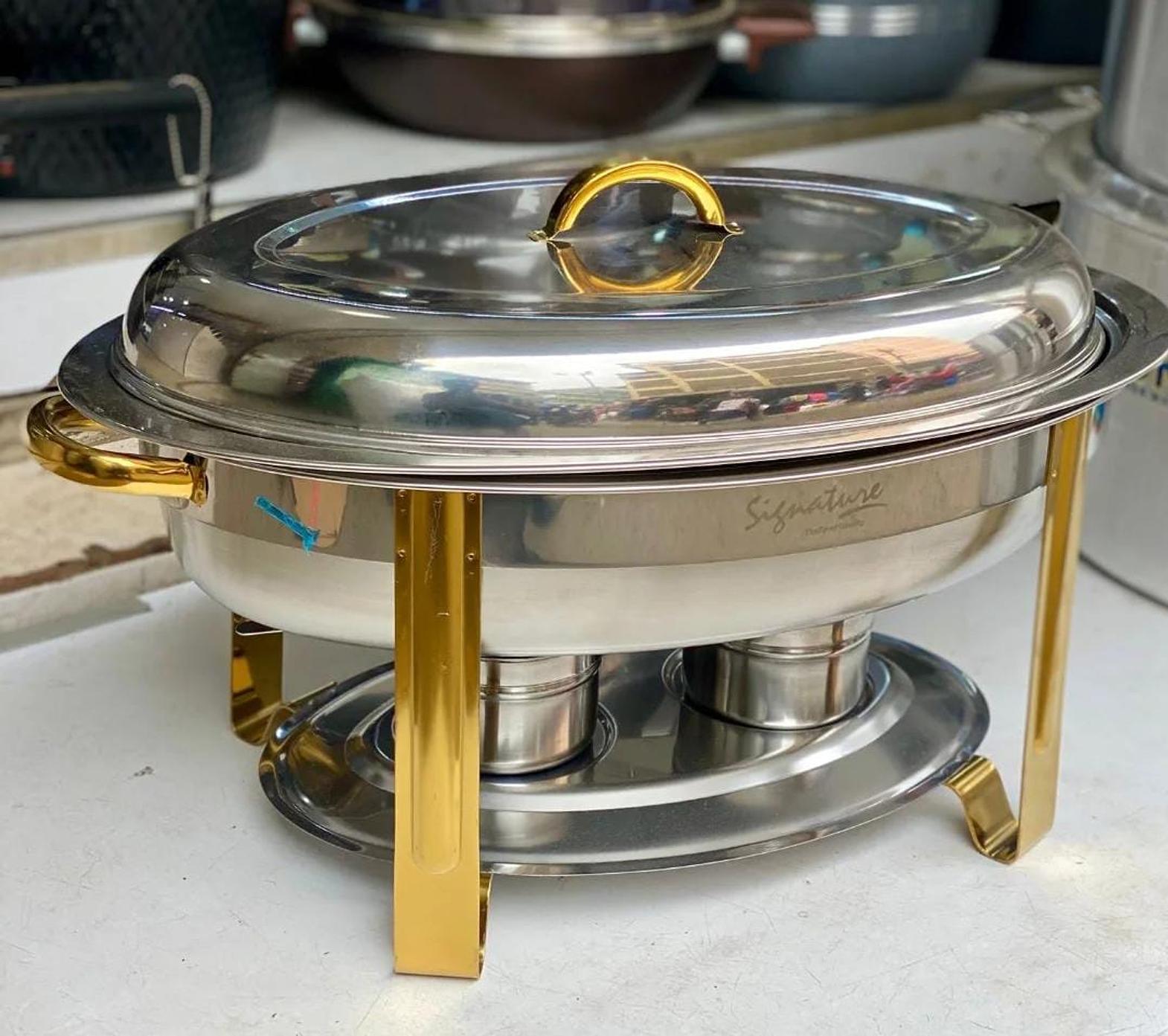 These golden stand signature food warmers offer a perfect blend of elegance and practicality for any gathering or special occasion. Crafted with a stunning gold-tone finish, they not only keep your food warm but also serve as a sophisticated centerpiece for buffets, dinner parties, or weddings. The sturdy golden stand provides stability, while the design allows for easy refilling and maintenance of your dishes at an ideal temperature. Whether serving appetizers, entrees, or desserts, these food warmers ensure that your food remains at its best, adding a refined touch of luxury to your dining experience.
