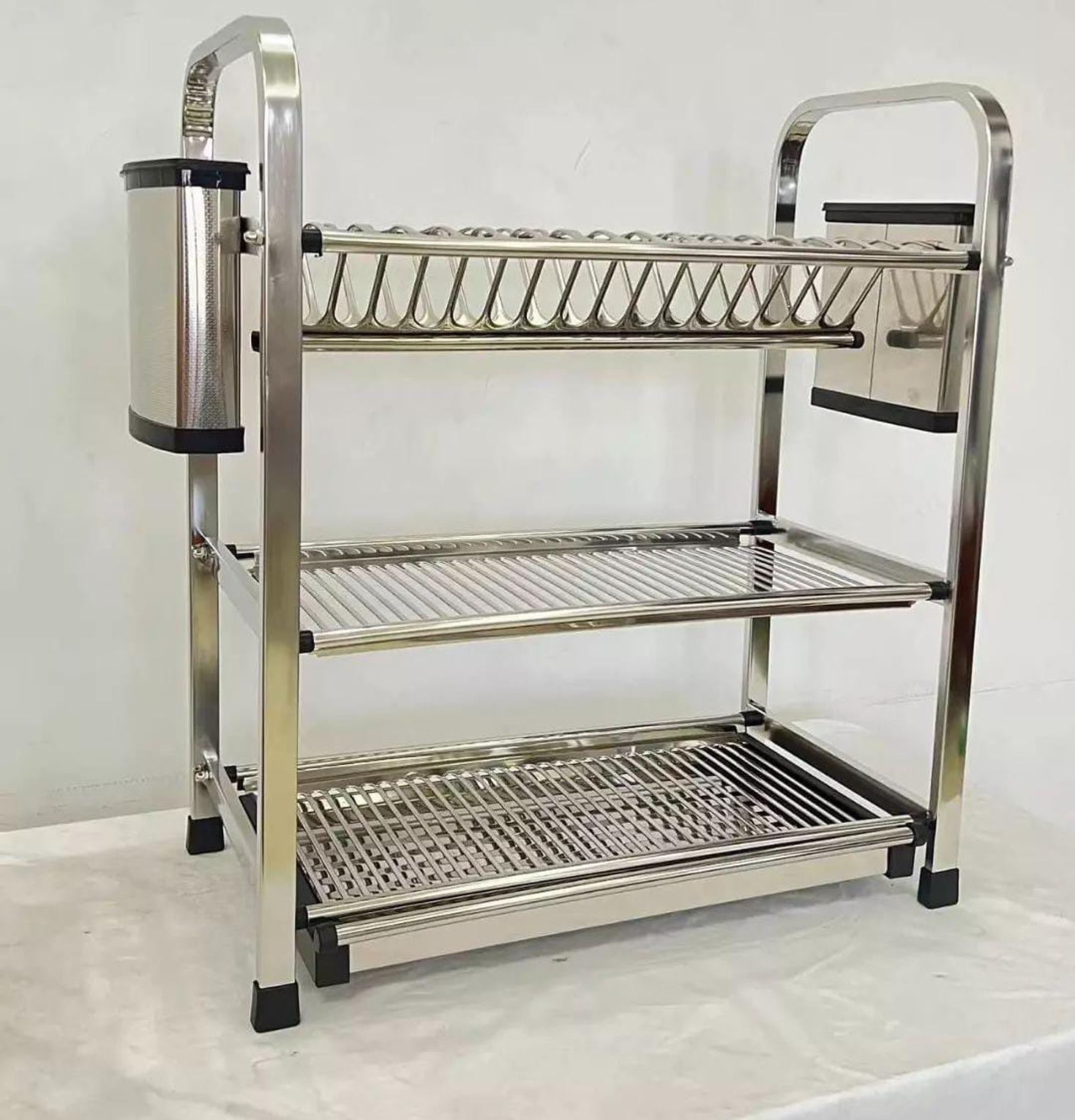 Our heavy-duty 3-tier dish rack is the ultimate solution for efficient kitchen organization, offering ample space to dry and store dishes, utensils, and cookware. Built with sturdy, rust-resistant materials, this rack provides lasting durability and stability, even with daily use. The three spacious tiers allow you to neatly separate different types of items, with designated sections for plates, bowls, glasses, and cutlery. Its compact, vertical design is ideal for saving counter space while keeping everything within easy reach. Perfect for busy kitchens, this dish rack combines practicality and resilience, making it a must-have for maintaining an organized, clutter-free space.