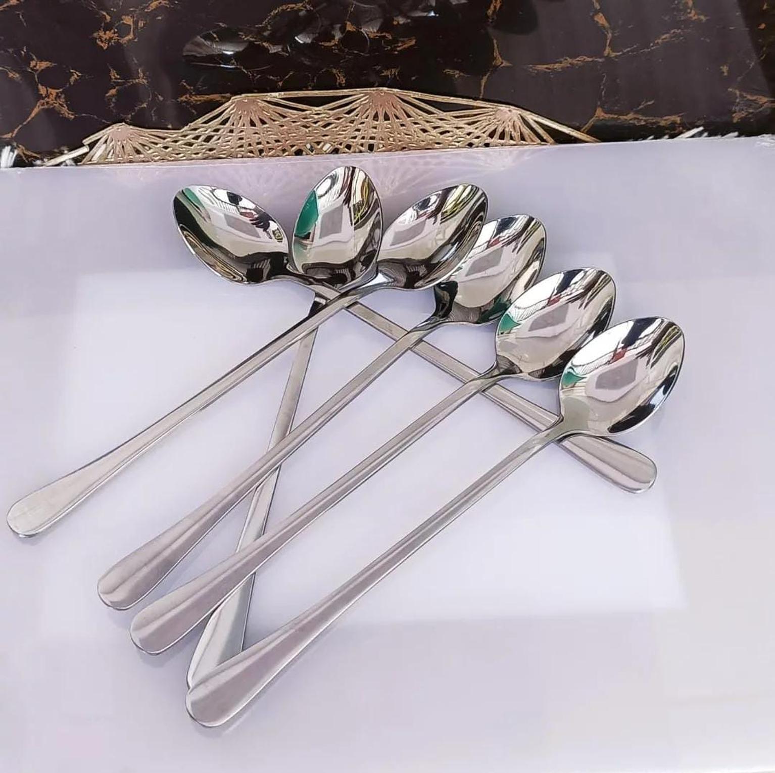 These heavy-gauge long tea spoons are designed to bring both style and durability to your tea time. Crafted from high-quality stainless steel, they are strong enough to withstand regular use without bending or warping. The elongated handle makes them ideal for reaching into deep mugs, teapots, or tall glasses, while the sleek, polished finish adds a touch of sophistication to your table setting. Whether you're stirring your tea, coffee, or desserts, these long tea spoons offer a practical and elegant solution, making them a must-have for anyone who appreciates fine dining and tea rituals.