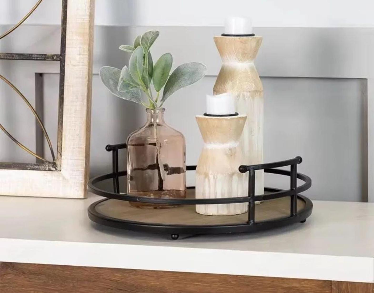 Our Home Decor Rustic Modern Metal and Wood Round Counter Tray perfectly embodies this philosophy, blending the natural beauty of wood with the sleek sophistication of metal. This versatile tray is not just a functional serving piece; it's a statement piece that adds character and style to any space. Whether you use it to display decorative items on your coffee table, serve drinks and appetizers to guests, or organize essentials on your entryway console, this tray will elevate your home décor.