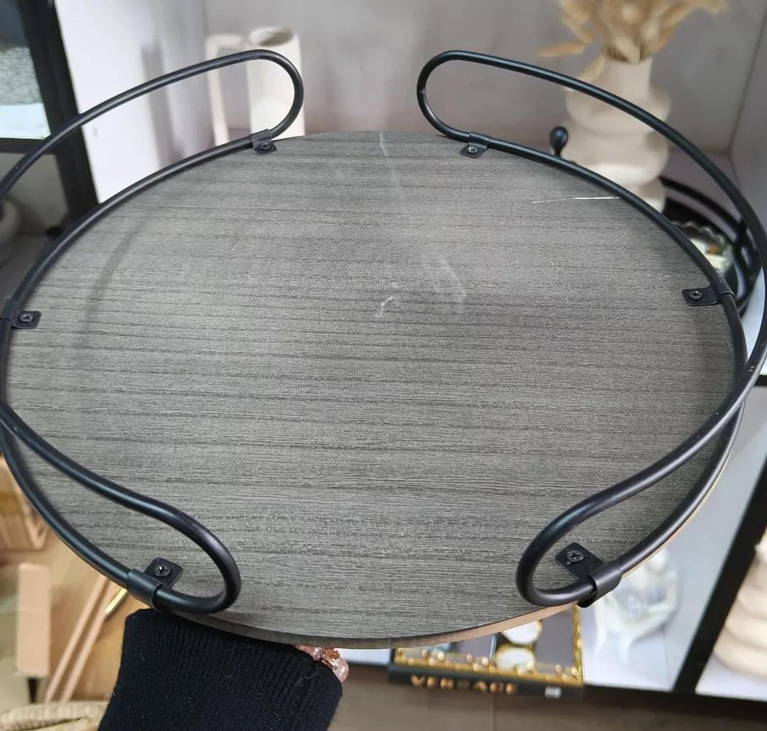 Bring both charm and function to your space with this round counter tray, crafted from a sturdy metal frame and a smooth wooden base. The rustic wood grain adds warmth, while the metal rim provides a modern, industrial edge, making it a perfect accent for any kitchen, coffee table, or dining area. Ideal for serving drinks, displaying décor, or organizing essentials, this tray combines timeless style with everyday practicality. Its durable build ensures long-lasting use, while the balanced design complements farmhouse, contemporary, or eclectic interiors alike.