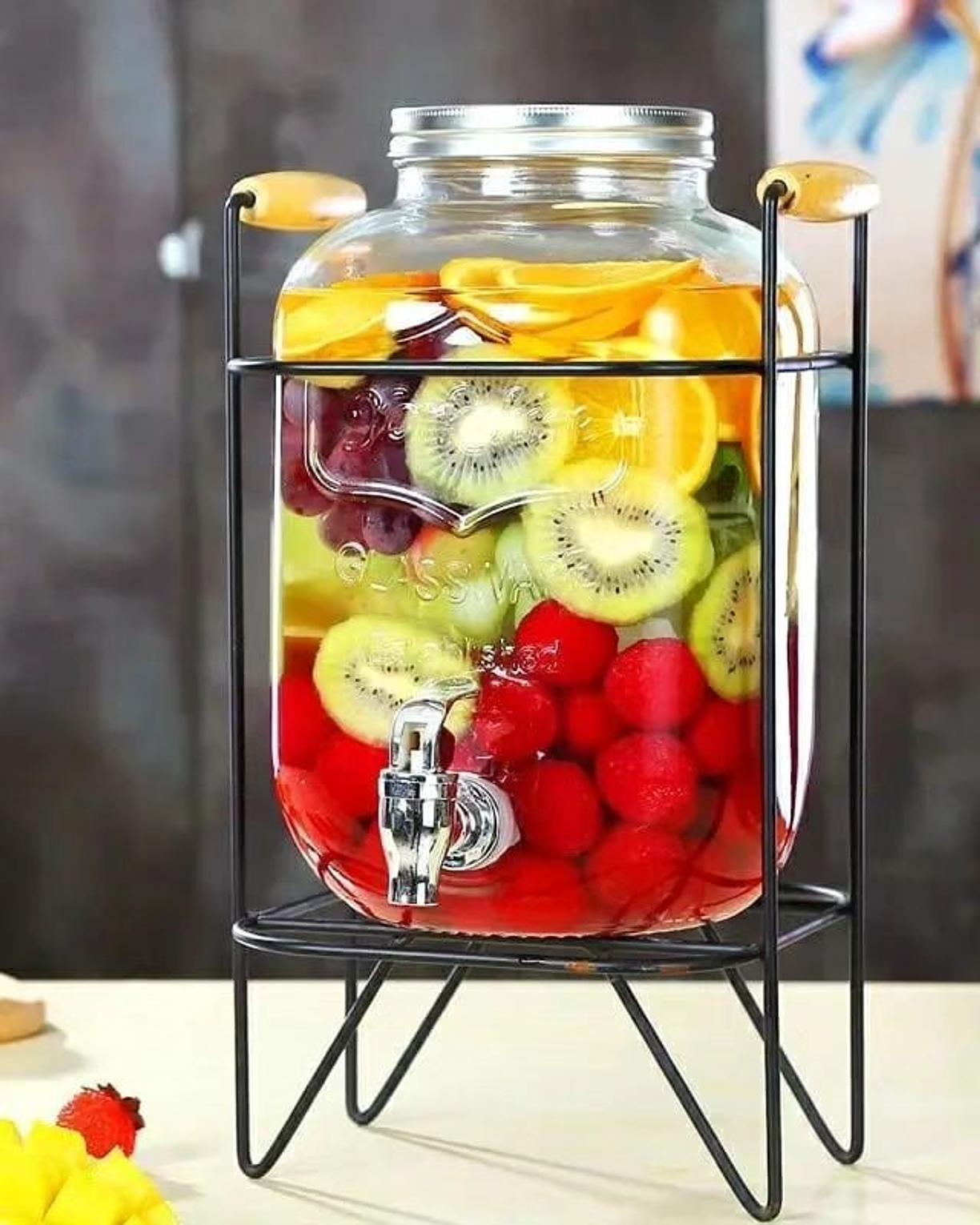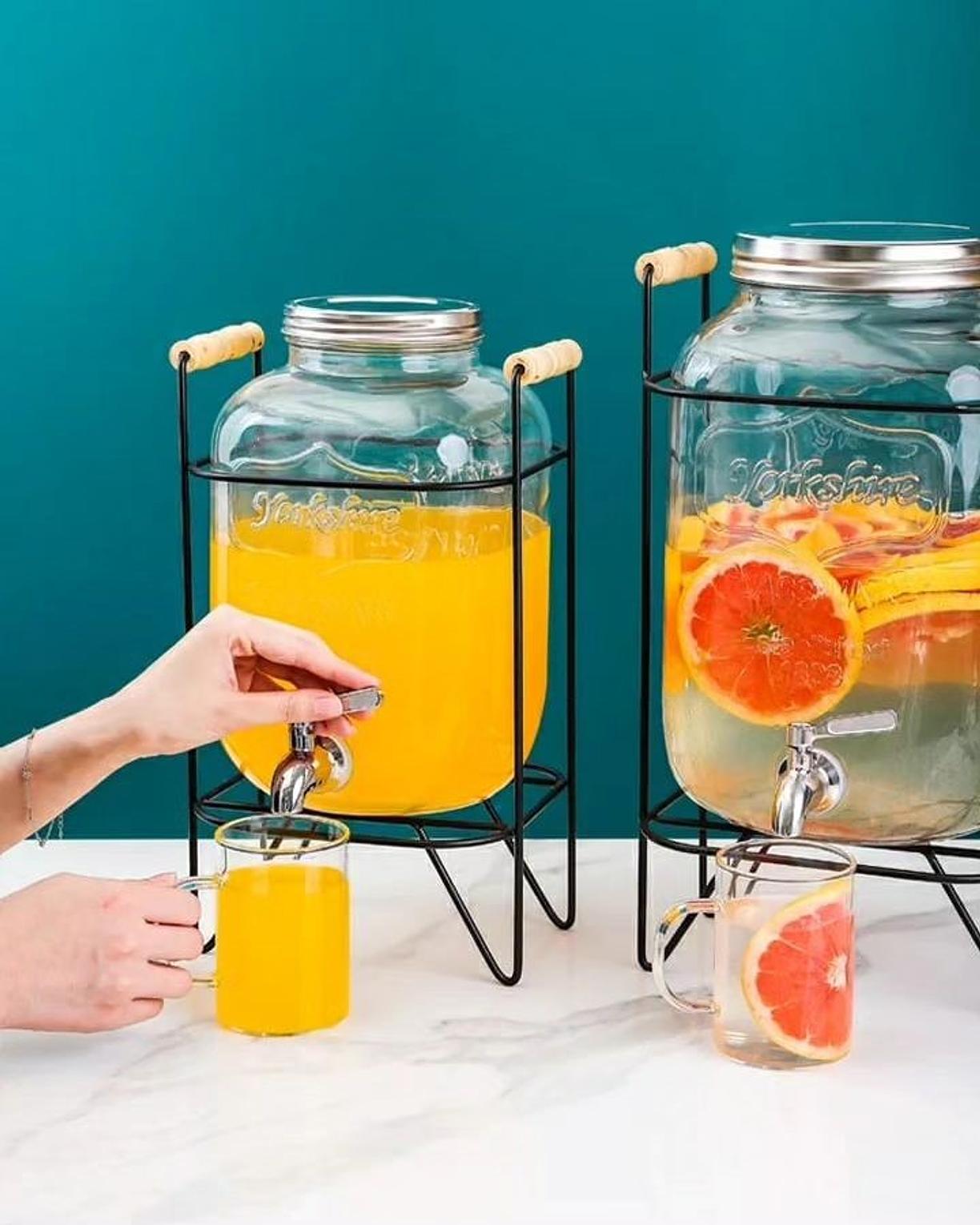 Elevate your beverage service with our stylish glass juice dispensers, available in two generous sizes: 5 liters and 8 liters. Made from high-quality glass, these dispensers provide a crystal-clear view of your drinks, allowing you to showcase fresh juices, flavored waters, or iced teas with sophistication. The classic design includes a secure lid to keep beverages fresh and a convenient spout for easy pouring. Whether you're hosting a large gathering or a more intimate event, the 5L and 8L options offer versatility and practicality. Perfect for both casual and formal settings, these glass juice dispensers blend functionality with timeless elegance, making them a versatile addition to your dining or entertaining collection. Easy to clean and refill, they ensure you can serve your drinks in style while maintaining durability and charm.