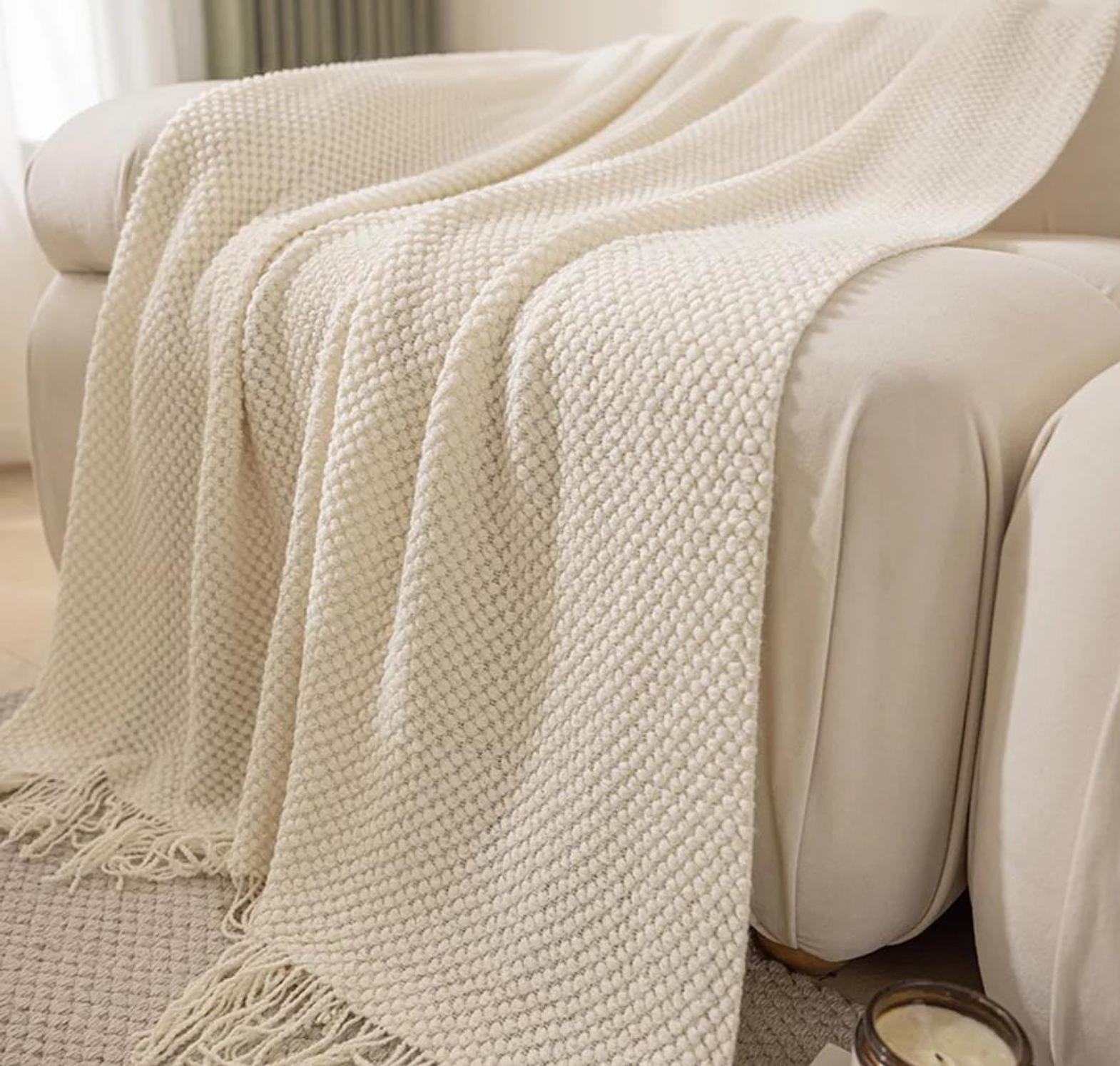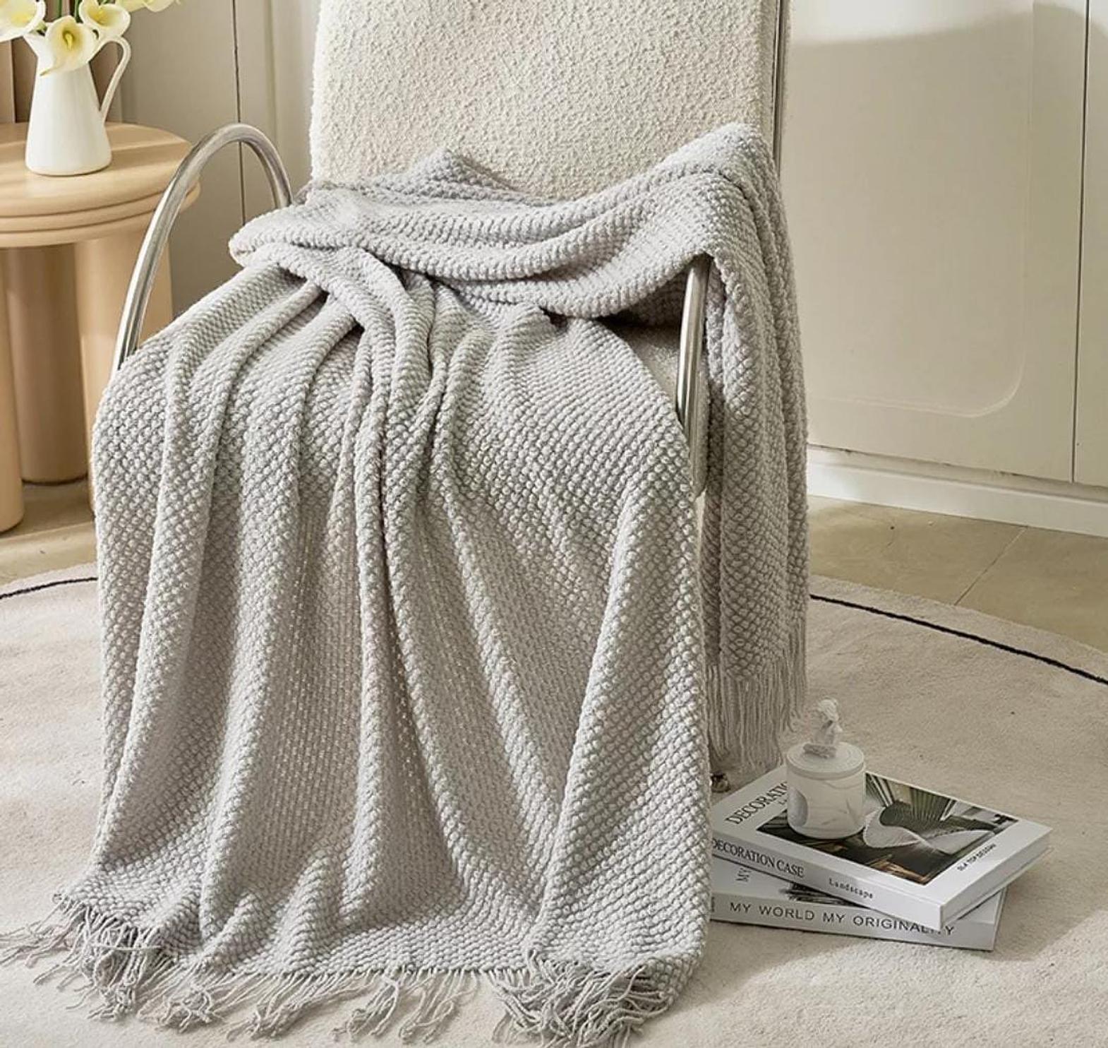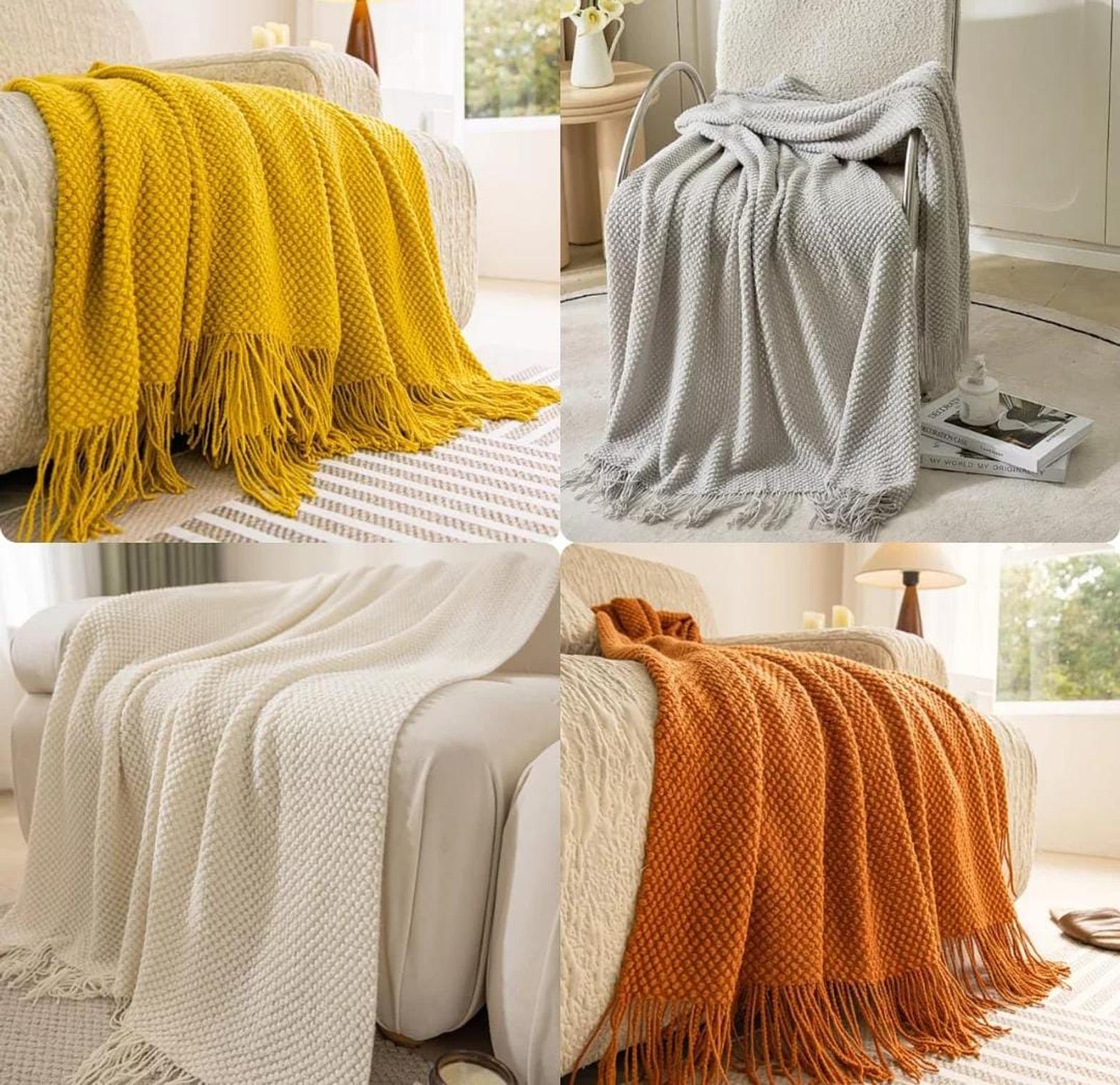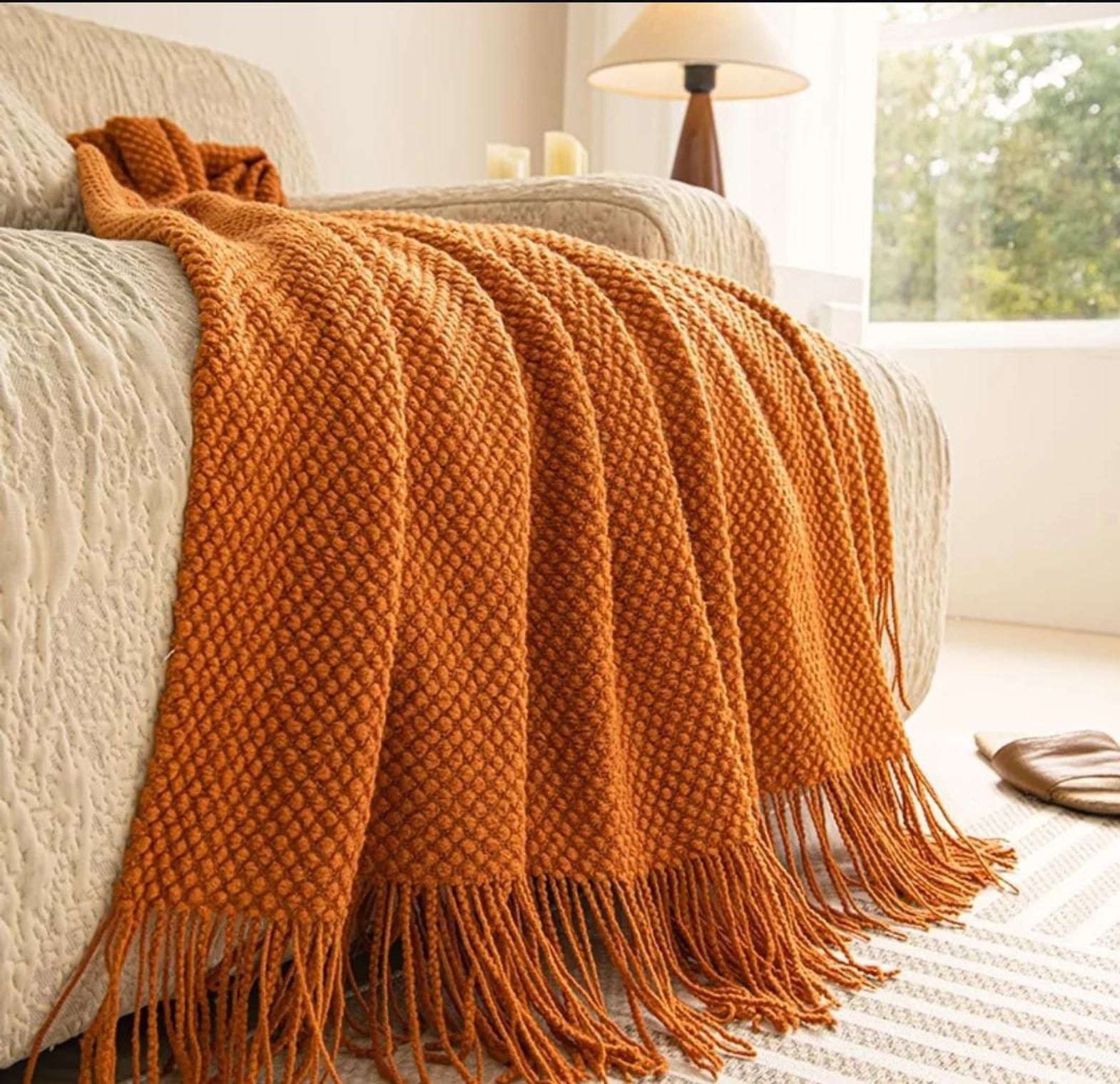 Wrap yourself in comfort with this beautifully knitted throw blanket, designed to provide warmth and a cozy, inviting atmosphere to your home. The soft, chunky knit adds a rich texture that not only enhances the aesthetic of your couch, bed, or armchair but also offers a luxurious feel on colder days. Perfect for lounging, reading, or simply adding an extra layer of warmth, this throw blanket is both functional and stylish. Available in a variety of colors, it complements different décor styles, from minimalist to rustic, making it a versatile addition to any room. Whether draped over the back of a chair or used for cuddling up during movie nights, this knitted throw blanket brings both comfort and charm to your space.