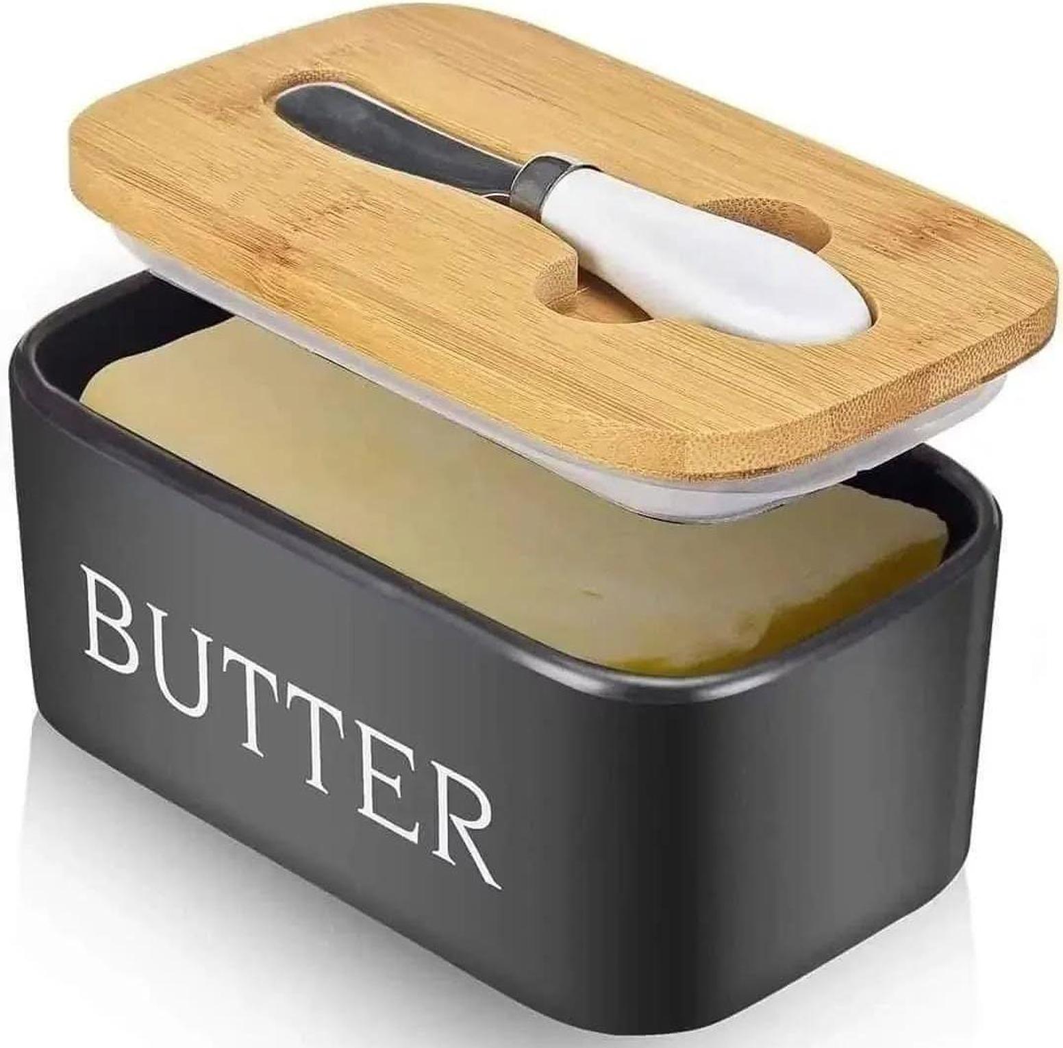 Add a touch of sophistication to your kitchen with our Large Size 850gms Ceramic Butter Dish, designed to hold a generous amount of butter while maintaining its freshness. The sleek ceramic body is complemented by a natural bamboo lid that seals tightly to preserve the butter’s texture and flavor. The included butter knife ensures easy spreading, making this dish not only practical but also stylish. Whether placed on your countertop or dining table, this butter dish elevates your kitchen decor while offering a simple yet elegant solution for storing and serving butter. The combination of ceramic and bamboo creates a timeless, eco-friendly piece that’s perfect for daily use or entertaining guests.