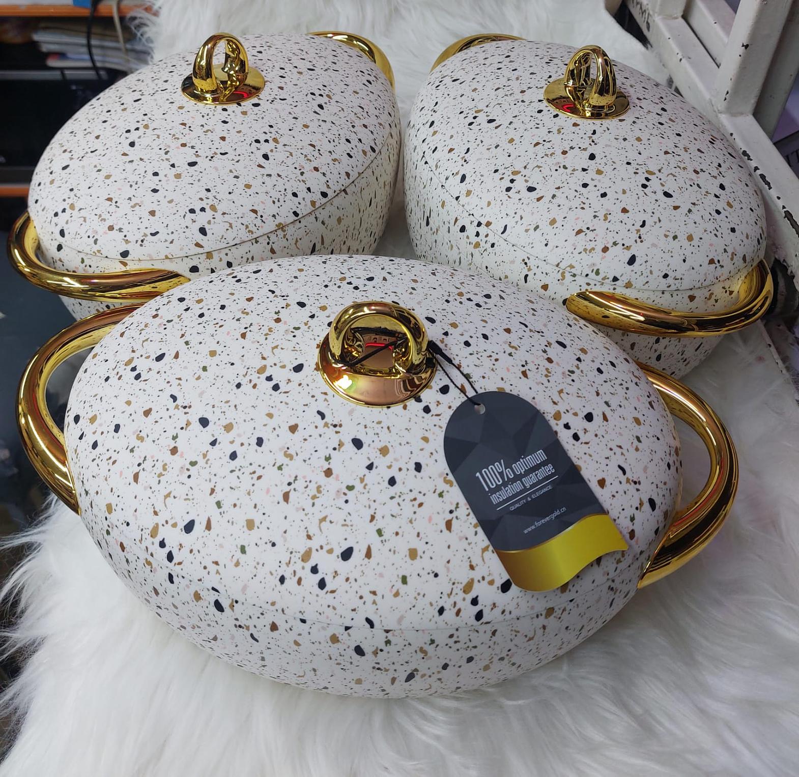 Introducing the Luxurious Insulated Hotpots, designed to combine style and functionality for everyday dining and special occasions. Available in 2L, 2.5L, and 3L capacities, these hotpots are perfect for keeping your food warm and fresh for extended periods. The automatic closing lid ensures heat retention and easy access, while the smooth finish and stylish design make these hotpots a beautiful addition to any kitchen or dining table.