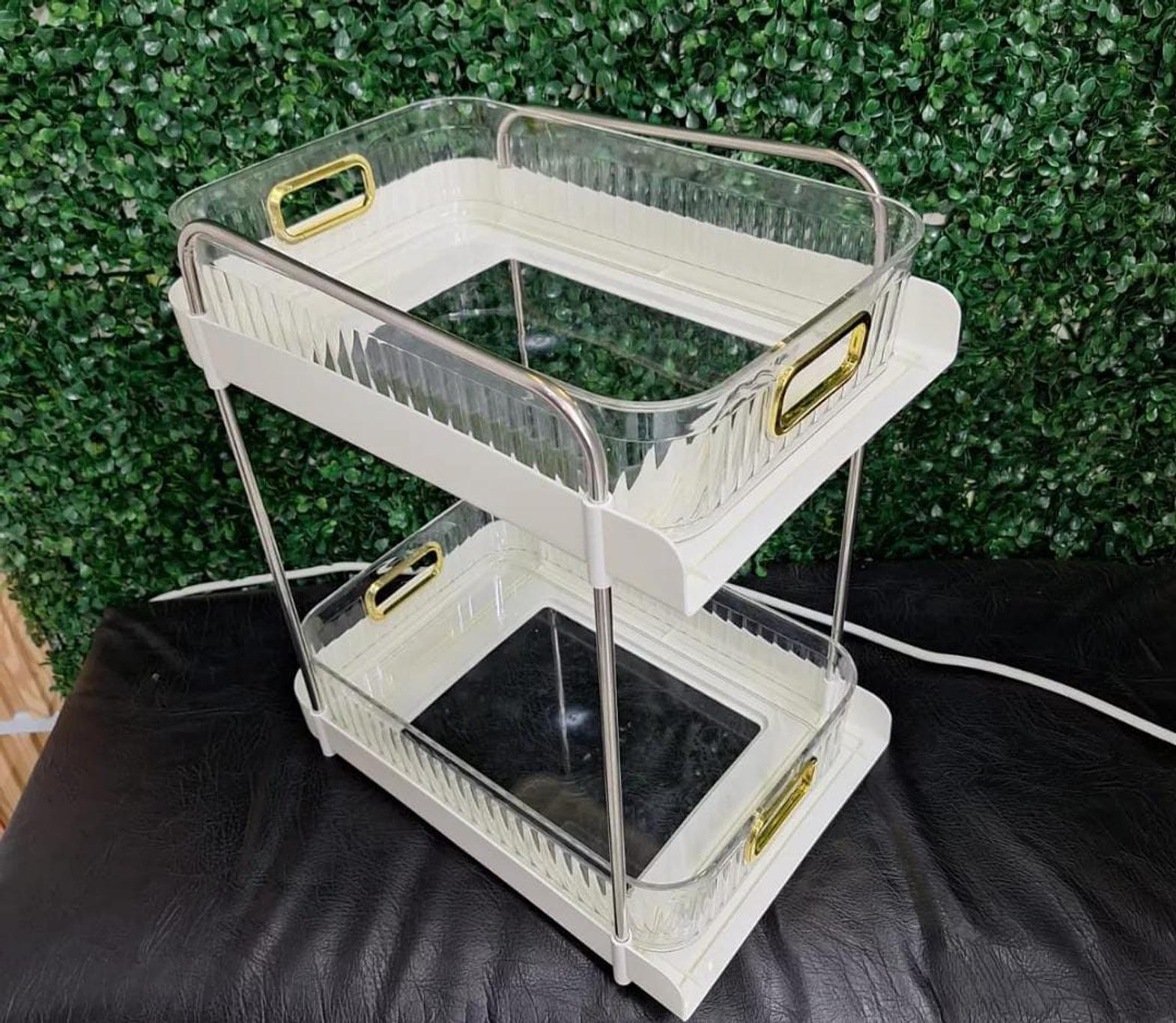 Upgrade your home organization with this luxury 2-tier multipurpose storage rack, perfect for decluttering countertops, shelves, and workspaces. Crafted from high-quality materials, it features a durable frame with a modern, elegant finish that complements any decor. The two spacious tiers provide ample storage for kitchen essentials, bathroom toiletries, office supplies, or decorative items, making it a versatile addition to any space. Designed for stability and easy access, this rack combines functionality with a touch of sophistication, ensuring both convenience and aesthetic appeal in your home.