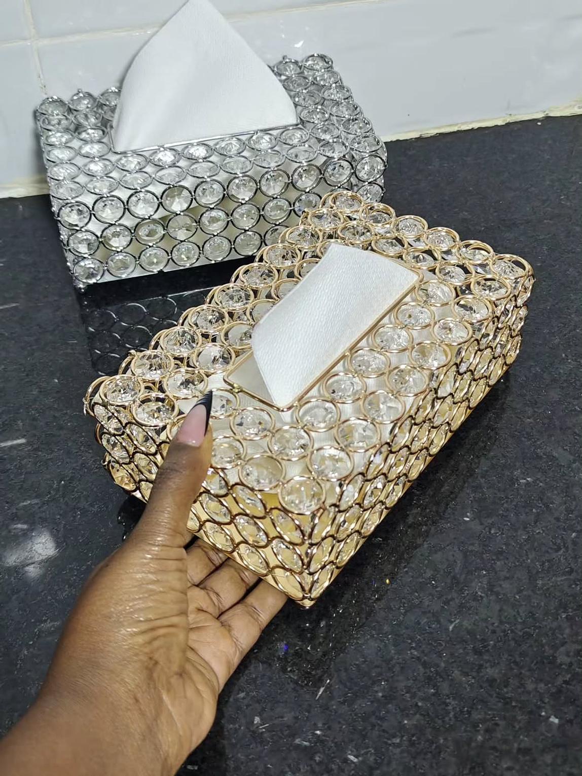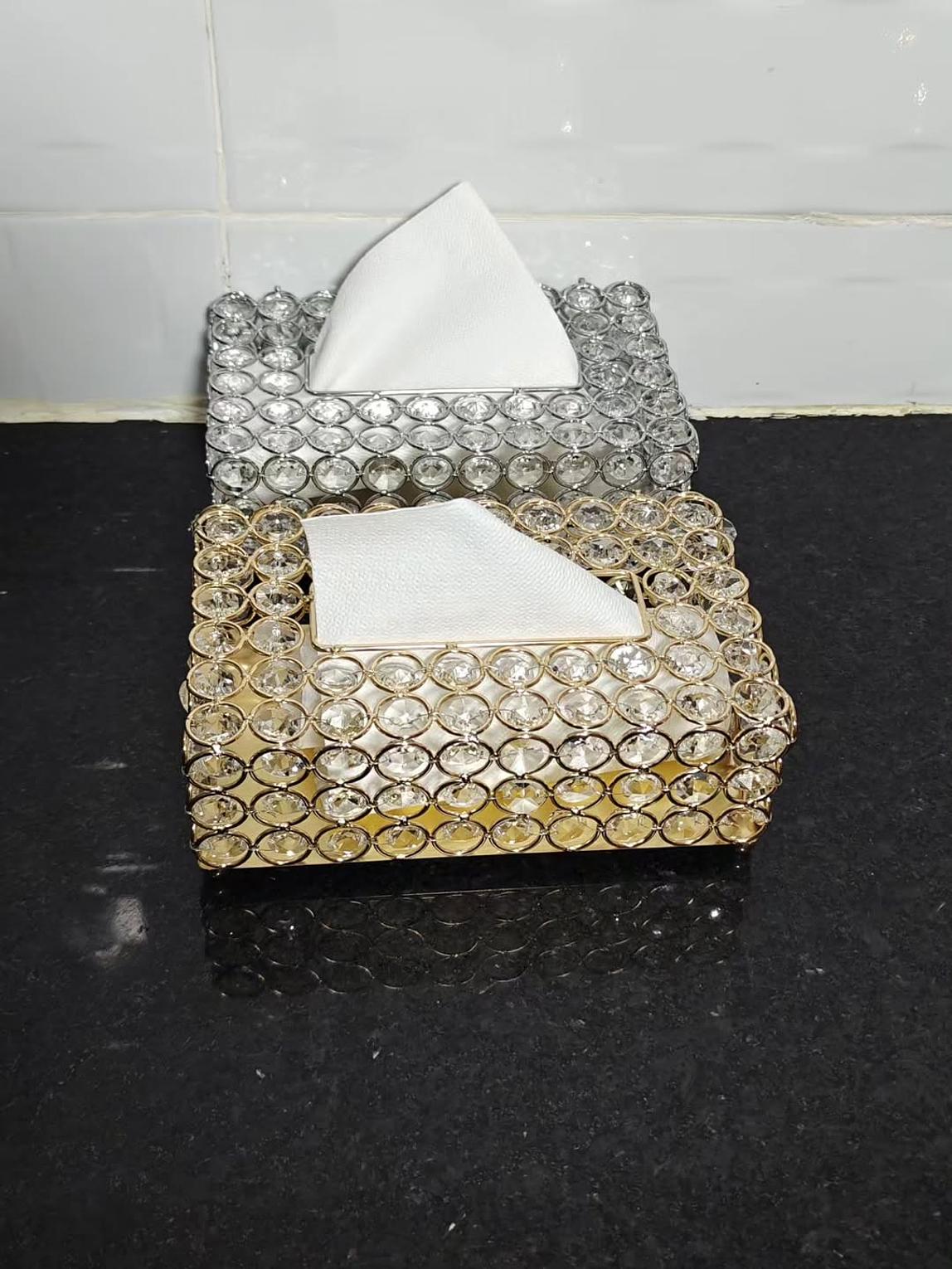 Transform a simple necessity into a striking decorative accessory with this elegant tissue box holder. Its sophisticated rectangular design is encased in a delicate metal framework adorned with rows of glittering, high-quality crystal-like beads. This design ensures that whether you choose the dazzling silver or the rich gold finish, the holder catches the light beautifully, adding a spark of luxury to your bathroom, living room, office desk, or bedroom nightstand. This holder not only conceals standard tissue boxes but also allows for easy, convenient dispensing while serving as a glamorous piece of home décor.