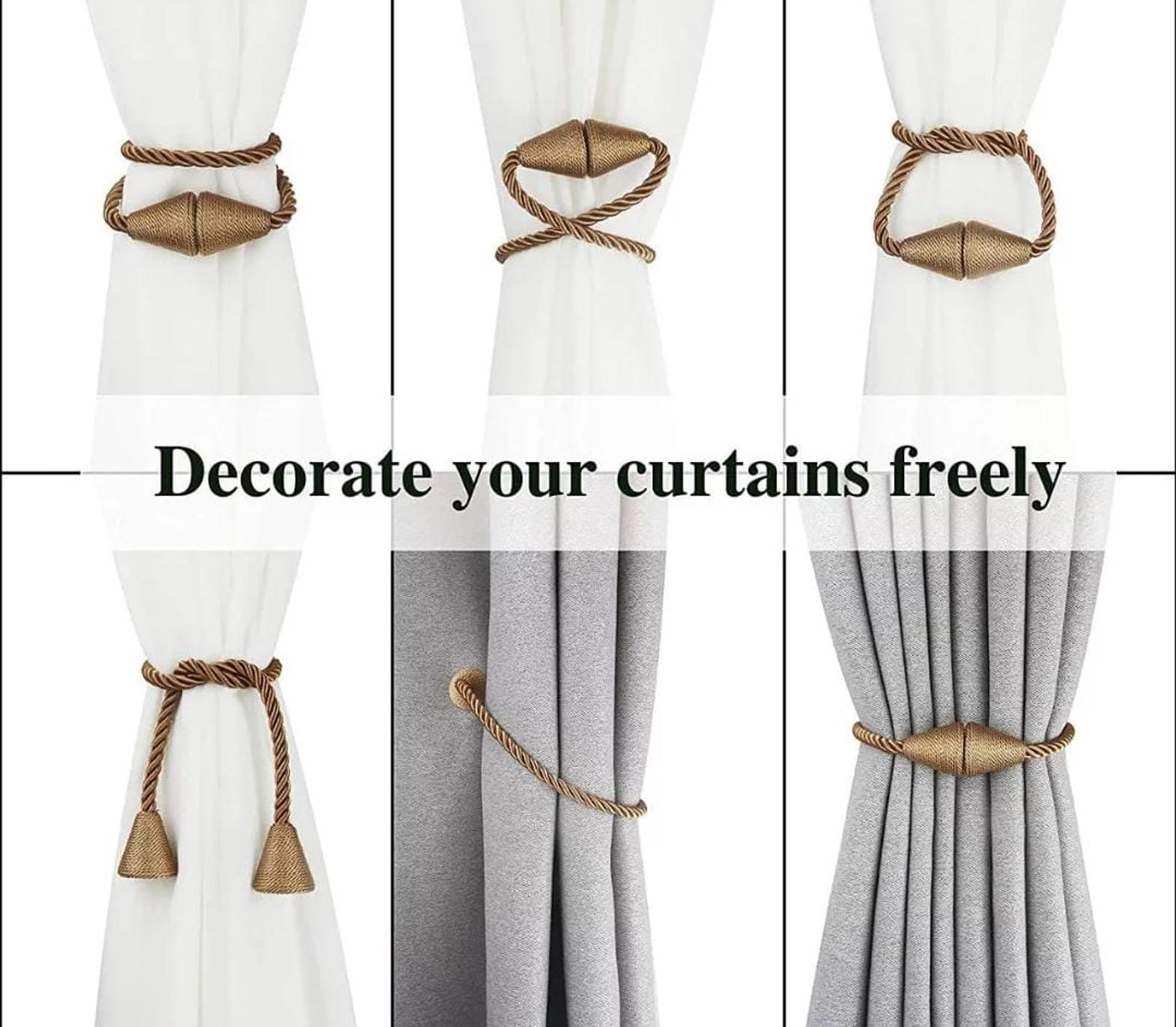 Add both convenience and charm to your home with Magnetic Curtain Tiebacks—an easy, elegant solution for managing your drapes. Designed with strong magnets and decorative finishes, these tiebacks securely hold curtains in place without damaging walls or requiring installation. Whether you're letting natural light pour in or creating a cozy ambiance, their flexible, rope-like design allows for various styling options to suit your room's look. Perfect for both thick and sheer curtains, they blend functionality with a modern aesthetic, making them a practical and stylish addition to any living space.