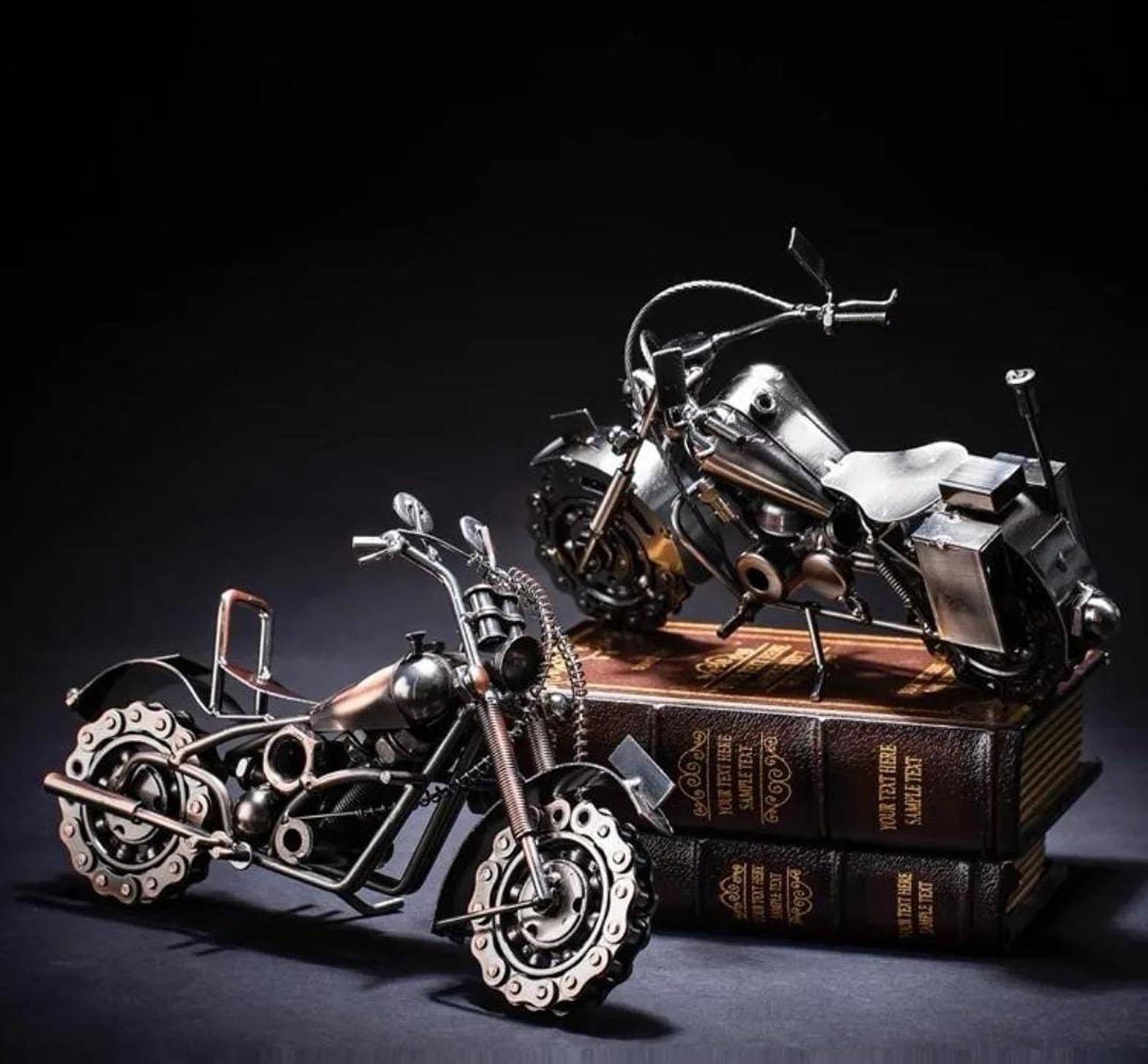 This metal vintage motorcycle sculpture is a striking piece that captures the essence of classic design and timeless appeal. Made from heavy metal, it showcases intricate detailing that reflects the power and elegance of vintage motorcycles. The weathered finish adds an authentic, rustic vibe, making it a standout addition to any room. Whether displayed in your living room, office, or garage, this motorcycle sculpture brings a sense of adventure and freedom to your space. Ideal for motorcycle enthusiasts, collectors, or anyone who appreciates unique, industrial-style décor, it’s a perfect blend of artistry and craftsmanship that will surely impress.